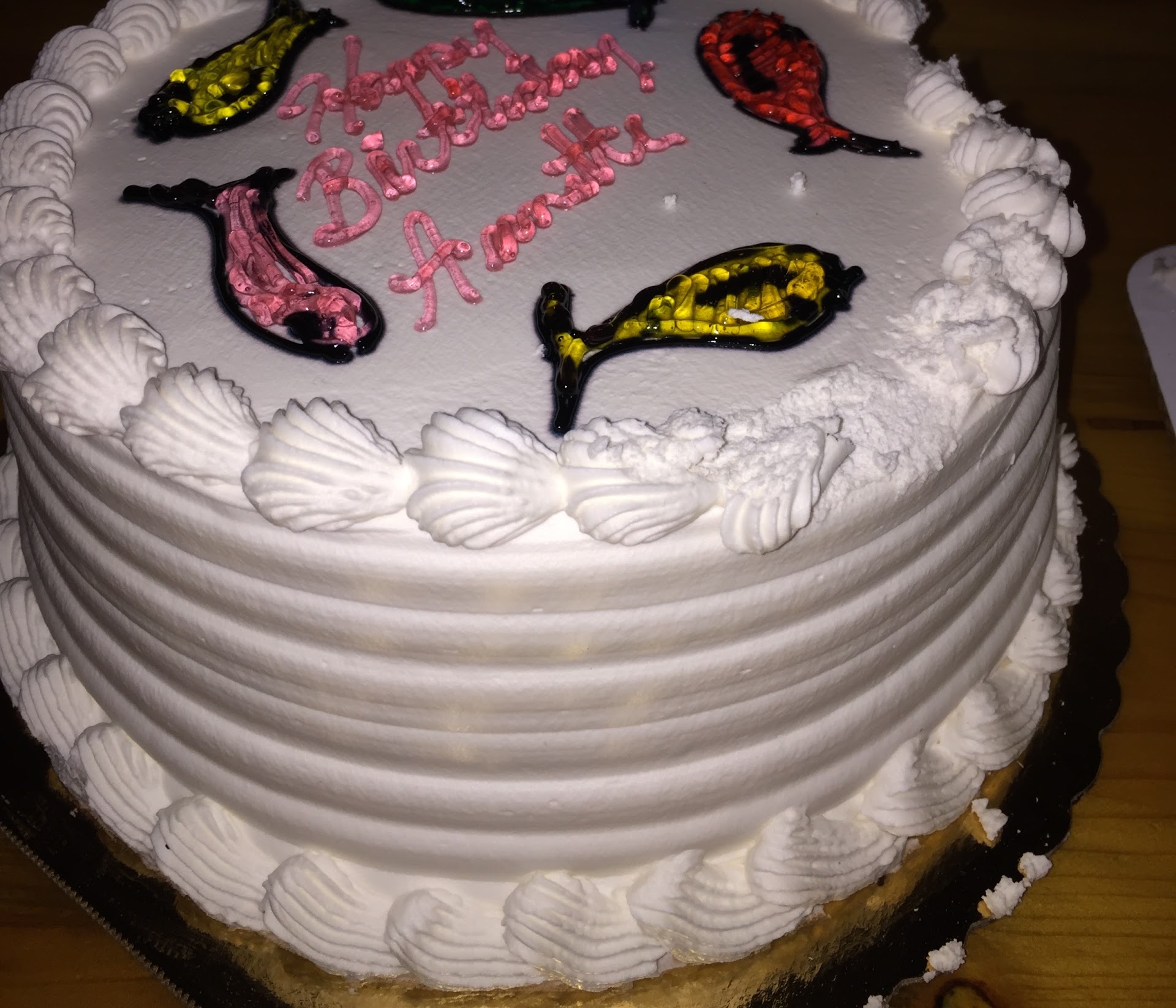 Lamest cake I have seen!!!! We ordered a cake for my daughter for her 2 me bday from this bakery. I saw some pics on Facebook on their Page and thought they ll do a decent job. My wife went to order a cake and told them we want something for a 2year old with fishes as theme. Their was a young lady , she didn't show her any designs or any past work. My wife also did not show her pic from their Facebook page to give them idea. She thought it can't be that bad. But when we received the cake it had fishes on it and it looked like it was drawn by a 5 year old kid. It was very very very disappointing. I felt like taking it back at smashing at their face at first. But they got lucky since it was my daughter's bday and I didn't want any Negative vibes that day. We went to great wolf lodge for her birthday , and got her another cake their . It made me feel little better. I can't deny that it's my wife's fault too that she didn't ask for design . But still they could have done an average job on cake . They put a 0 effort on making this cake. I am posting a pic and u can take a look: Taste of cake was also average and nothing special . I hate to give negative reviews but I had to since this cake was for my child. I don't want any parent to feel what i felt. If u still decide to go with them make sure you look at designs and tell them what u want. Otherwise a disaster will be...