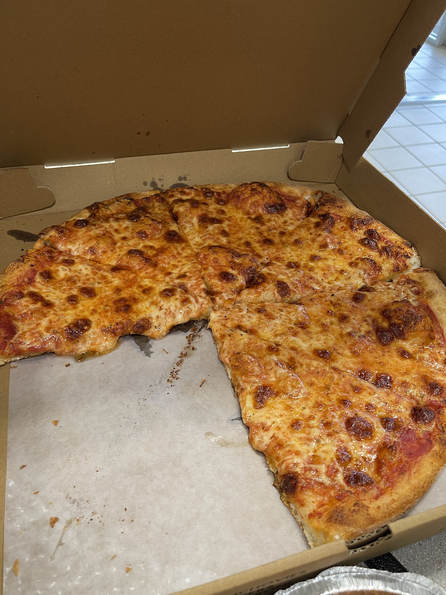 Read moreLuigi’s is great old school pizza. Never a bad slice. We routinely leave our hometown to come here; in a market with lots of great choices for pizza, Luigi’s is our choice. Tonight was a simple pie, a little extra done as we requested. Add a small order of buffalo wings and a salad, we’re set. My wife likes that they have fountain birch beer. Their crust is perfect, never disappoints.