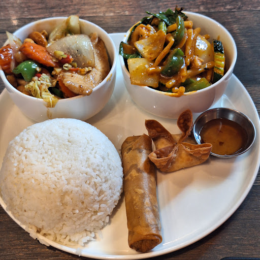 Read moreMy husband and I happened upon this gem of a restaurant last night when we saw how slammed the Burger Bar was. We both enjoy Thai food and thought we'd back track a bit and give Thai Khao Kaeng Express and Pizzeria a try. The odd mash up of foods got our attention and the smell when we walked through the door was amazing! The staff was very friendly and efficient, the restaurant was spotlessly clean, and the service was prompt and accurate. We ordered cream cheese wontons to start and they were perfectly crisp with soft cream cheese inside. The sweet chili dipping sauce was perfect with them. I ordered the Thai Ginger Pork Stir Fry for dinner and it is truly excellent. The flavors are well balanced, the ginger is present but not overpowering, and the vegetables were crisp and delicious. The white rice was also cooked to perfection. Per Thai tradition, there were chopped peanuts to sprinkle on top and they really added to the flavor profile. I highly recommend this place. We plan to return in the future so our children can have pizza and my husband and I can have...