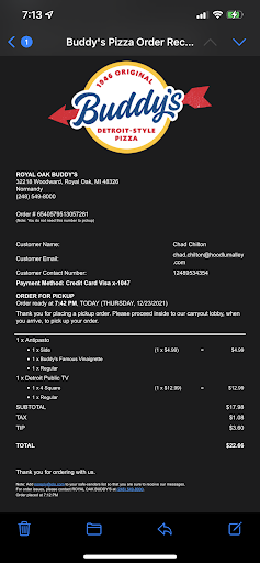 Read moreI placed an order for the family meal deal at the Royal Oak location (large pizza and Greek salad) at 5:11pm and was told 45 min. I show up at 6:10, wait in line to pay and then am told it will be another 10 min bc my pizza is cooking. I wait 20 min and then the guy hands me a small pizza. I say, this isn't mine, I had a large and a salad. He calls the manager over who says I'll refund you your money. I say, well I want a pizza-the one I have been waiting on. He says no one printed your tickets or made your pizza. I say fine, how about the salad I ordered (Greek), along with a second salad (asked for antipasto) so that my family has something to eat tonight. He says okay. Turns around and bags the salads up. I get home to find 2 antipasto salads (I don't eat meat which is why I ordered the Greek.) I will not be back. So unorganized. They only ask for first names, instead of maybe a name AND a phone number, so that they can keep track better. I will...