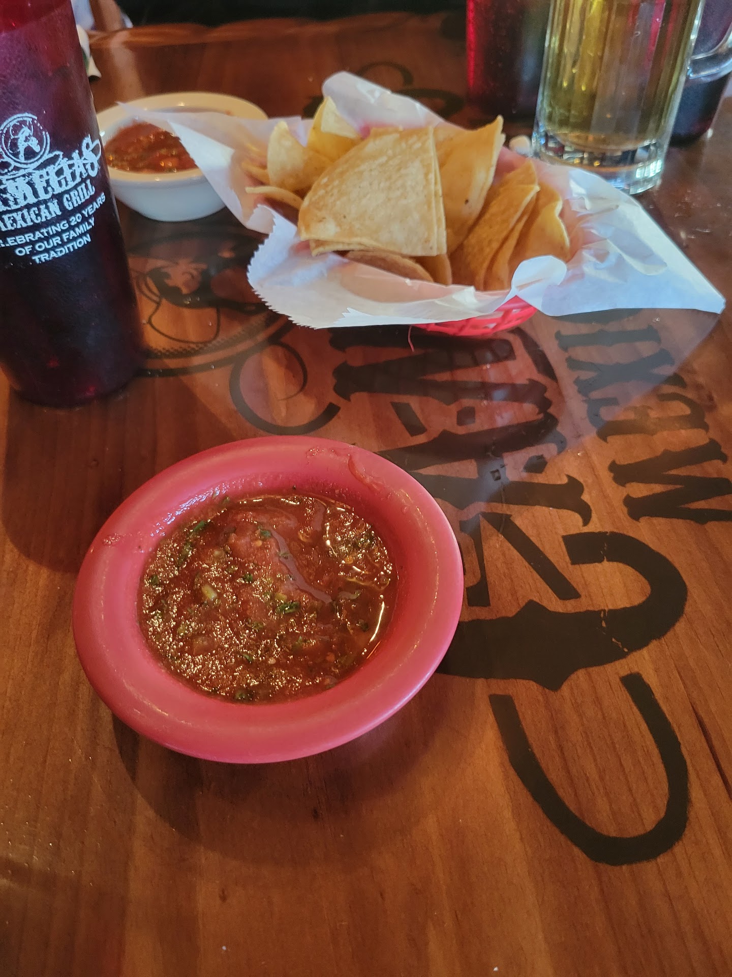 If I could give negative stars I defiantly would. This was our first time at this restaurant and from the beginning the server had an attitude with us before we even ordered anything. We were given a very small basket of chips that in comparison to other Mexican restaurants fell very flat. Mexican food is my favorite and I generally eat at Mexican restaurants and these were the worst chips by far. Impatiently waiting for us to be ready to order which only took us about five minutes after she rudely asked if we were ready and glared at us waiting from across the room. Now upon trying to order one person from my 3 party group asked if he could have beef with rice and beans. The server blatantly said they could not do that because it was “unprofitable” for the restaurant. So he chose steak quesadillas instead. Another party member ordered quesadillas and the server asked if she wanted them fried or grilled. Never being asked this before for a quesadilla she was unsure. The server rudely said “if nobody has ever asked you before then they were fried.” Therefore she ordered the fried thinking that it would be like a traditional quesadilla... it was far from. In case your wondering, normally quesadillas are grilled... We were pretty hungry while waiting for our order to arrive so we asked if we could get another basket of chips. The server said it would be an additional $1.75... we said never mind. Our order came and was less than impressive. Also the steak quesadilla came with steak in two shells with rice and beans on the side.... soooo almost exactly what they told us they would not do just with a couple shells added on. Now if you ask me just take off the shells and bam... you have the simplified order requested. Charge the same price, no big deal- then they’d even save a couple cents on two tortillas. The fried quesadilla was not good, might as well have grabbed one from Taco Bell. Would have been better and cheaper. I ordered nachos. The nachos weren’t bad, just with those weird chips. I took off three ingredients tomatoes, onions, and sour cream and asked if I could have lettuce and cilantro added. They did give me an extremely small side of lettuce and some cilantro. When the bill came we noticed that they charged us .75 cents for the cilantro which is the price to get an entire bunch at the supermarket! Also the lettuce which was about just a handful of they charged $1.29.... and entire head of lettuce is only .99 cents at the grocery store. Over all the service, food, and prices were not worth it. If you want some good Mexican food I’d recommend going...