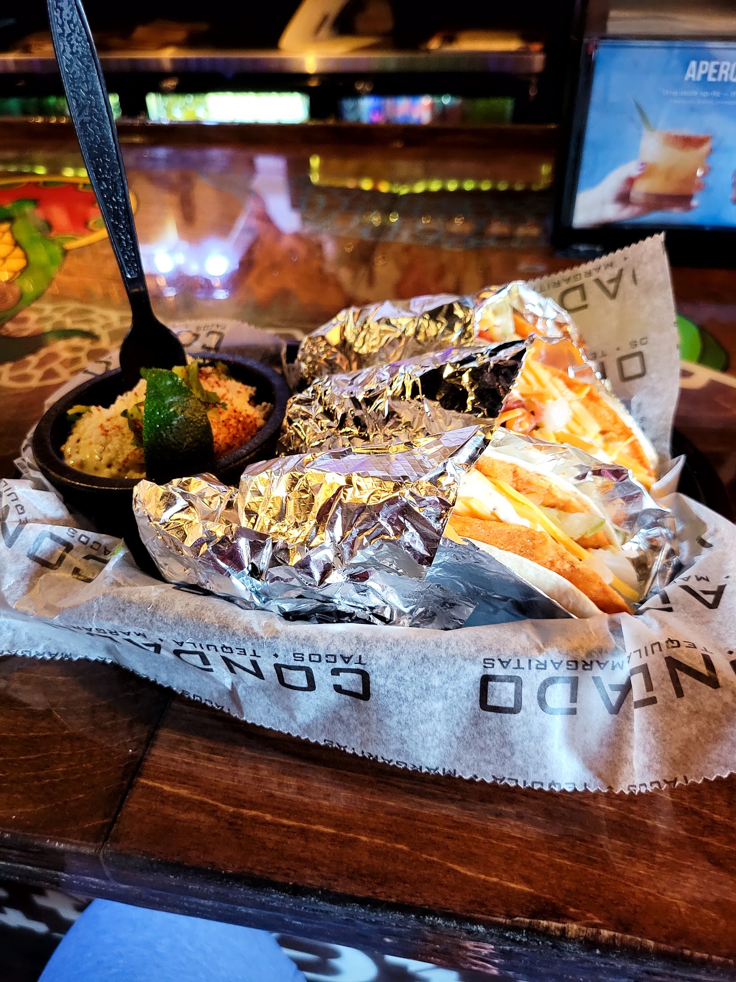 Condado may be a chain, but in downtown Royal Oak, they are a strong pillar of the restaurant community. Even when they're busy, you're usually able to grab a spot, and they're attentive, quick, and the food's always on point. The food always comes out fast and fresh. I recommend building your own bowl and seeing just how many options you can get. It's impressive, and way more portion size than competitors (eat your heart out, Chipotle). The value for how much food you get is crazy! My favorite thing to add is their Thai chili tofu. It's unlike any other addable protein you can get at other taco/burrito spots. It's got such a crazy profile... you gotta try it. They also have so many different drink and cocktail selections. Their margaritas are incredible, and they usually have seasonal flavors and specials too. And you can get a sampler to try em all out in one go. Plus they've got classic rotational liquors and beers you can add. But my favorite thing to get? Is honestly just a classic diet Mountain Dew. And you know they got that on draft!!! I'd like to give a shoutout to the bartender/server Bailey, too, who's usually working behind the bar. I've been served by her a handful of times, and she's really attentive, kind, and jovial. She makes a mean margarita and keeps the diet Mountain Dew flowing. Feels good to know that the people working there are enjoying their lives, Condado seems to be doing something right. Also, they hired a lot of local Detroit area artists to do the murals scattered throughout the restaurant. It feels great to see them give back to the community in that way. And they did a bang up job, too. For parking, I'd recommend parking at the Center St Garage behind it - it's free for two hours, and then 75c each...