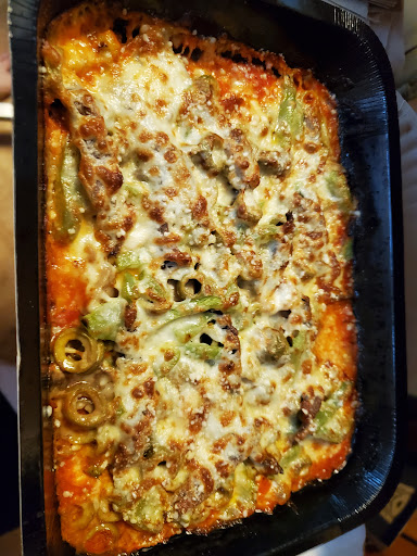 Now the cons. Nothing to do with the pizza. The atmosphere here was super dead! When you walk in there's No sound at all. You barely hear pizza pans banging in the kitchen. No TV, No Radio. Most of all, No talking. Staff wasn't even talking amongst themselves. Walked into Marco's and wasn't even greeted. The young lady walked up to register and stood there for me to speak first. Explained to her this was my first time here. Nothing... Then preceded to let me stumble through the menu the best way I could reading all the different options and pricing. Was told to put my card in the reader after ordering and that was about it. Give us 10m and walked away. I figured the receipt would be attached to the pizza box. But I didn't get a chance to ask for one before she turned around to leave.