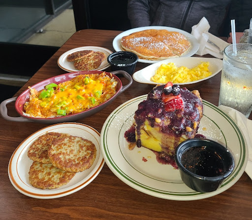 Read moreGross! We ordered the oven baked french toast & purist buttermilk pancakes. These entrées did not come with sides-had to order separately. So, we ordered turkey sausage patties, scrambled eggs, & "loaded potatoes". The loaded potatoes were the store brought shredded hash browns with microwaved cheese & uncooked onions & green peppers on top. The eggs & sausages were subpar. The french toast was a tasteless extra nutty birthday cake. The pancakes had no flavor. The meal was $50 and not worth even half of that. I have no idea where all these 4 & 5 star reviews are coming from. When leaving the bill, the waitress did bring along 2 chocolate covered...