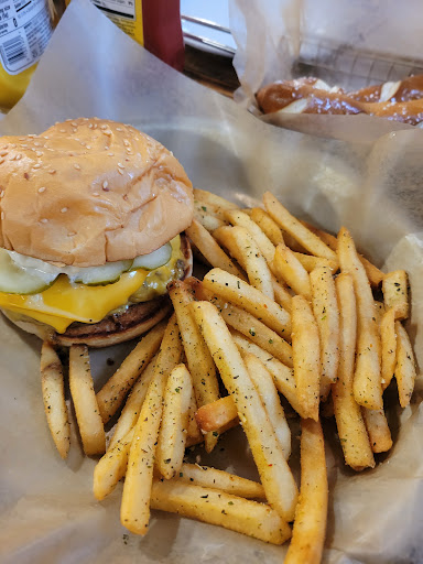 Read moreWent today for brunch/lunch. I had the Juicy Lucy and my friend had Baja Fish Tacos. The burger was good even though I requested medium rare and it was border line medium well. They were still juicy and flavorful. The burger came with fries which were the winner. They are seasoned fries and the seasoning on them were amazing. I also had the soft pretzel sticks and the asiago cheese sauce was amazing. The mustard was good but a bit strong on the vinegar. So if you are not a vinegar fan skip the mustard. My friend indicated the Baja fish tacos were good but could have used a bit more fish. It was tilapia which is a less meaty fish so that could be the reason. She said they are great for a light meal, they were not heavy at all. Our server was amazing. I wish I caught her name but we were her last table of the day. She answered all my questions, even found out for me what brand seasoning was used on the fries. She also checked on us and was very personable. She was amazing. I hope management realizes how great she is and does everything they can to keep her for the long haul. The atmosphere was great as well. I would highly suggest visiting this location for brunch/lunch. I look forward to coming back and reviewing the...
