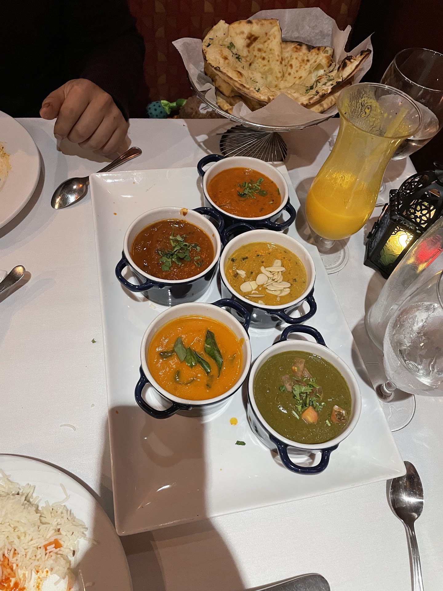 Read moreHadn't been to this place in a few years and always remember it for its stunning flavors and service. Went for dinner on 5.11.2023 with a great sense of anticipation. First off, the server Naina was absolutely amazing. So sweet attentive and informative. The other servers in the restaurant and I think one was the manager were also really nice too. Now the food. It was good but not great like I remembered. Appetizers were ok. We had the spinach pakora on recommendation which was great. The samosas came out luke warm though and the chicken 65 was chewy, tiny and a bit dry. We ordered a few curries and a biryani. The butter chicken was quite nice but we also ordered a chic ken Tikka Masala which was also sweet and tasted so similar. That should not ever be the case with those two dishes. I suspect that they used the same base because the curries tasted really similar and that was disappointing. We also had the ammas chicken and a methi chicken from the back page of the menu. Both were good but again, even though spicy (heat wise), both had a sweet undertone. The flavors were on the flat side with the typical Indian spices not really coming through. We tasted more of the sweet and heat rather than spices and again that was disappointing. The biryani was 5 star. Excellent and very flavorful. Gulab Jamon and kulfi were great as was the rasmalai. All in all the food was decent but too sweet for our liking. Almost feels like they are going in the direction of mainstream American food which is unbearably sweet and lacks character. All that said, the overall experience was wonderful and I'd go again just because everyone is so nice. Id love to see them go back to their more authentic flavors of a few...