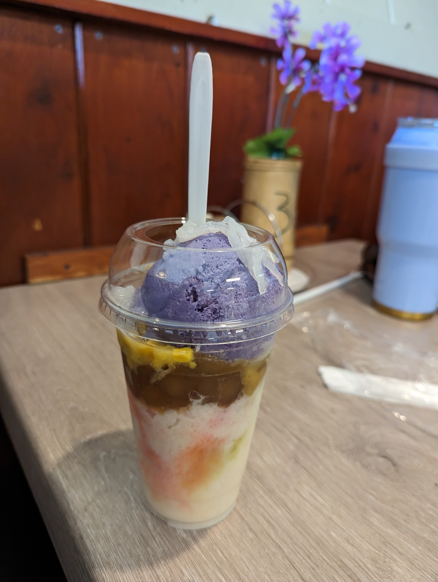 The halo-halo was great, too, and pretty large. The ube ice cream in it was somewhat icy, but since you're supposed to mix it all up anyway, it wasn't that off-putting.