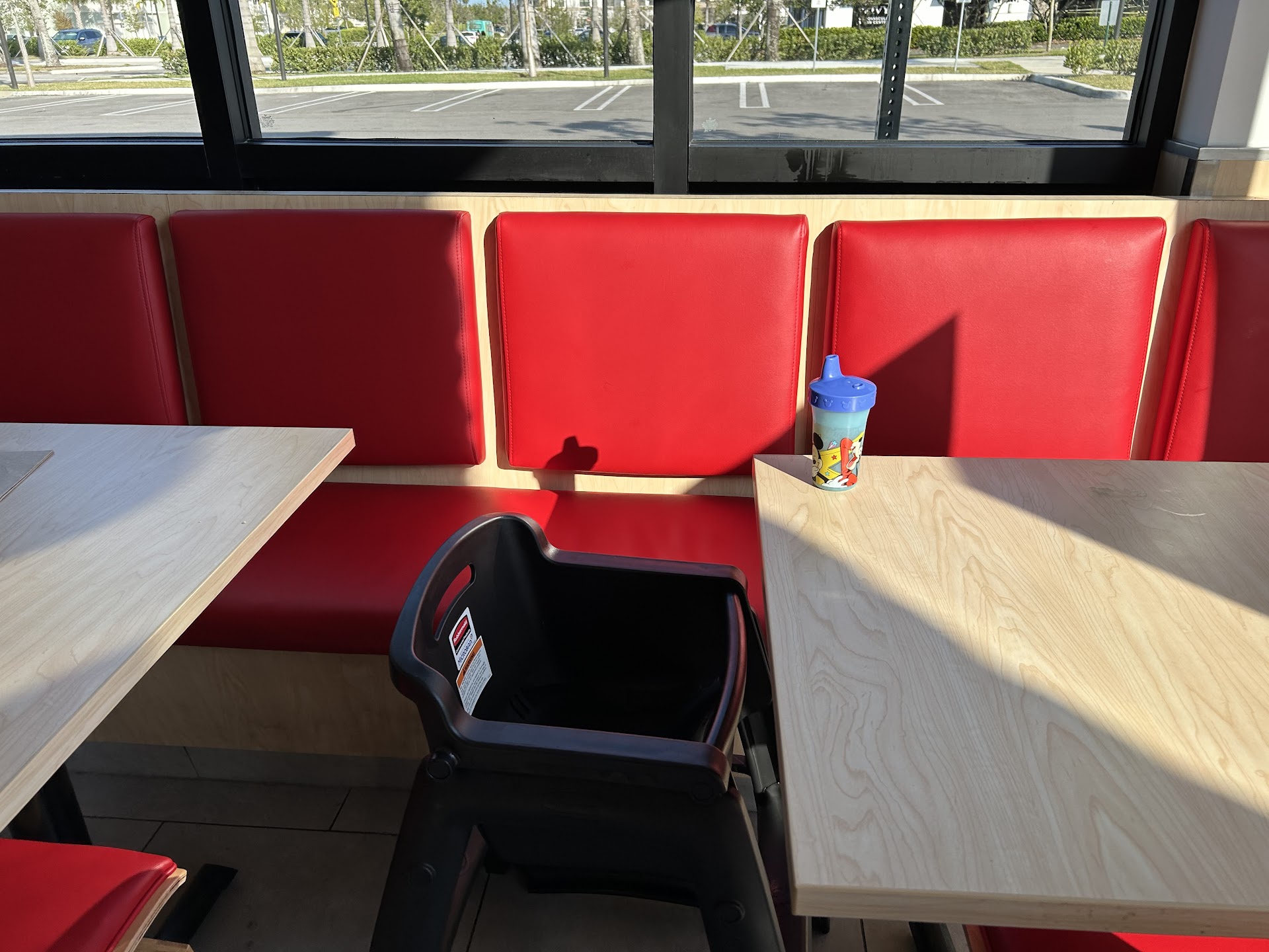 At first, you get a very loud chaotic impression. The seating is literally more cramped than McDonald’s. There is a common bench for the window seats, and only a 2 feet gap between tables so it feels intrusive because my kids high chair is touching the next persons table.. Also there is a gap between the back of the bench and window, which just collects bugs.