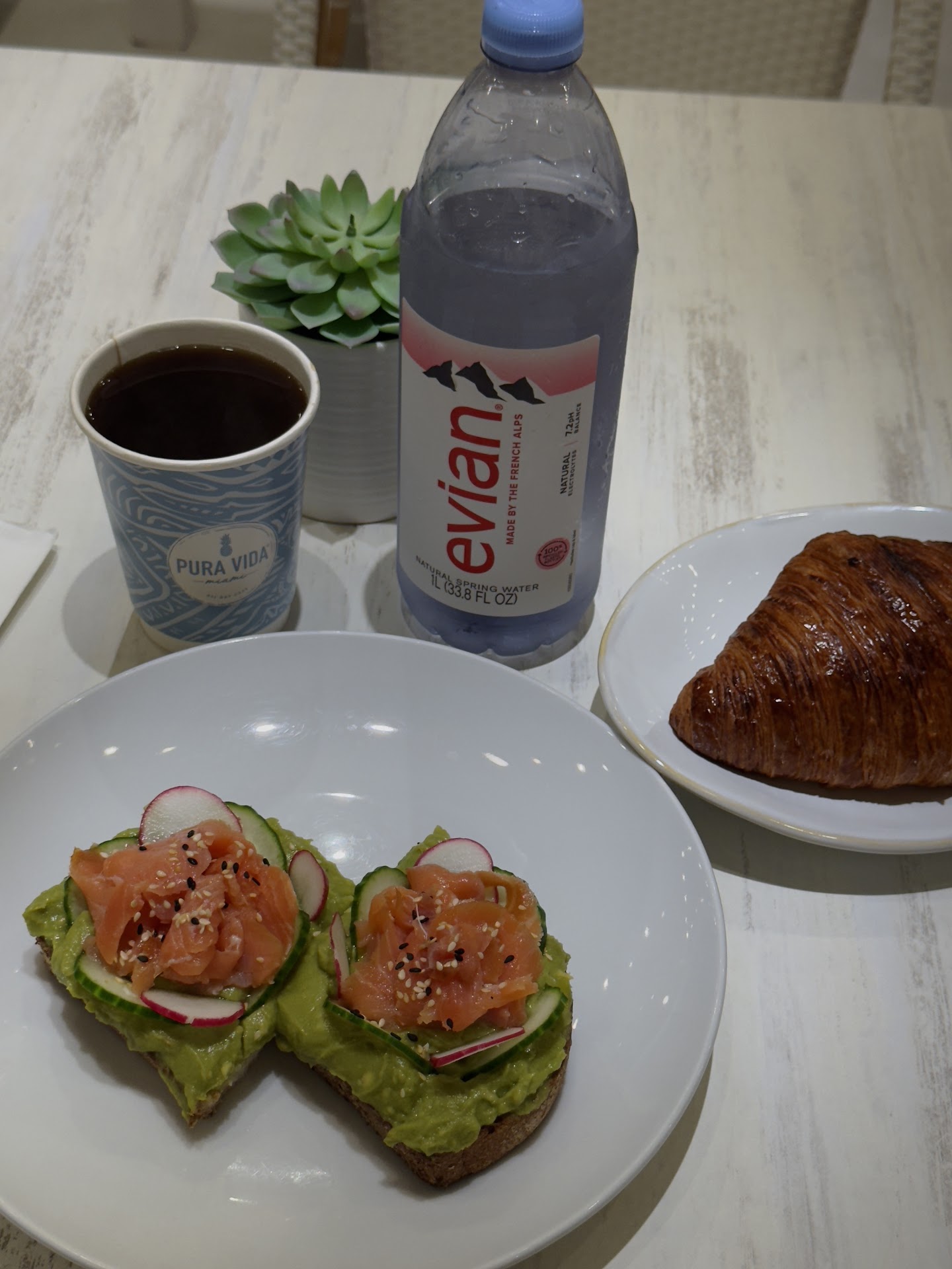 Read moreFirst time here. The girl working the stand seemed to be annoyed because I was taking long trying to set up my account. When I apologized for taking long she just stared at me. She finally offered to help me when I tried to redeem my wellness shot. She seemed in a rush or just annoyed maybe she was having a bad day because it was NOT busy there was NO LINE. Moving forward Victoria and queeny were very attentive and happy to help. They alone definitely took my rating from a 3 to a 4. The food was fresh I got an avocado toast with smoked salmon , an Americano, and a croissant as a starter. I bring my laptop and work; the calmness in the restaurant is very nice. I moved on to the spicy tuna bowl that consisted of raw wild tuna, cilantro rice, avocado, cucumber, radish, micro cilantro, scallions, sesame seed, ponzu yuzu sauce, spicy aioli. It was super fresh and had great flavor. I paired that with the Miami mocha with extra protein. The quality of the food definitely matched the price. I spent around 60 dollars for...