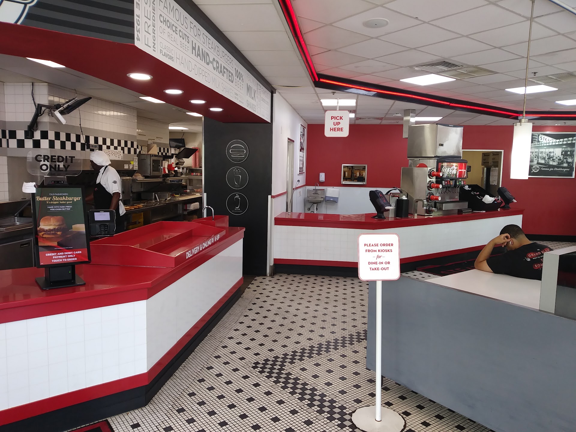 Read moreWe came in, hoping to sit and have a nice meal, then find out there’s no waiters and it’s pretty much all self service. We would’ve left if my mother did not have a walker since it’s hard for her to walk currently. We order at the kiosk and get a receipt. I saw for a second on the screen something about a QR code but it went back to the Home Screen to fast for me to even read it. I find out the QR is for the drinks, which is very inconvenient again, as my mom can not walk that much. The QR scanner does not work all that well, it does not tell you if your scan works or not. I tried filling my drink and it stopped part of the way. Then we find out that what my mom had ordered (a hot dog) they don’t have. Why not have an option on the kiosk that says not available or that they’re out, like others kiosks such as the ones at McDonald’s? Even more, they wanted us to tip, which usually we have no issue, but considering we could’ve got the same thing from the drive thru and not pay for a tip, why would we do that if we’re serving ourselves more or less? The appeal of Steak n Shake was the 1950’s diner feel, but now with the kiosks, it feels nothing more than set dressing. Would never eat inside again, and highly unlikely we’ll ever come back. It’s no wonder it’s so empty inside, when it used to be more crowded even for lunch. Having the scanner by the drink fountain makes the restaurant feel cheap, same with the kiosks. Would recommend going pretty much anywhere else at that point, especially if you’re hoping for dine in service that other similar...