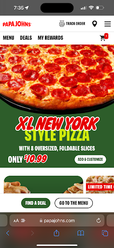 The real issue here is with customer service. We had $10 Papa Dough (PJ’s new version of rewards points) and used it on our online order. It brought our total down to $10.81 which was shown on the checkout page. After finishing the check out process, I noticed the confirmation email said it charged us $21.63 which was the total prior to the $10 Papa Dough being applied. My credit card showed the same. Since I figured this was a technical error with Papa Johns website I called their customer service number instead of this location directly.