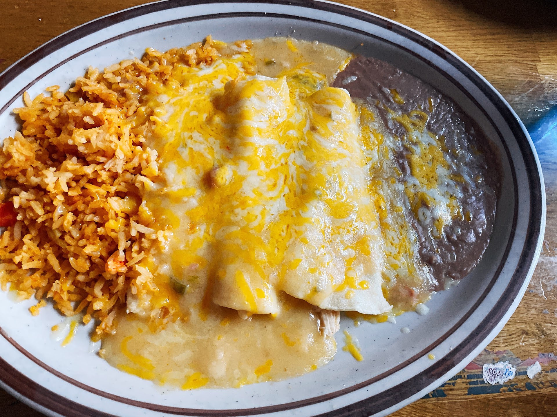 The red sauce on the enchiladas was a bit hot, but they use Hatch Chili, from Hatch, NM, I asked...I recognized it actually. It is the best grown in the US, as far as I'm concerned. Tip: If chili peppers are grown in the hot summer months, the chili is hotter when consumed. Eat a tortilla chip to kill the hot, burning mouth syndrome. Tip: I put some sugar in my salsa and I think it cuts down the acid, if not it tastes good to me. I added nothing to any of the food delivered to our table. I have not made homemade salsa for years, I think it's time. I just wish I had a friend here that made homemade tortillas. I was spoiled by my friends when I lived in various places in Texas.