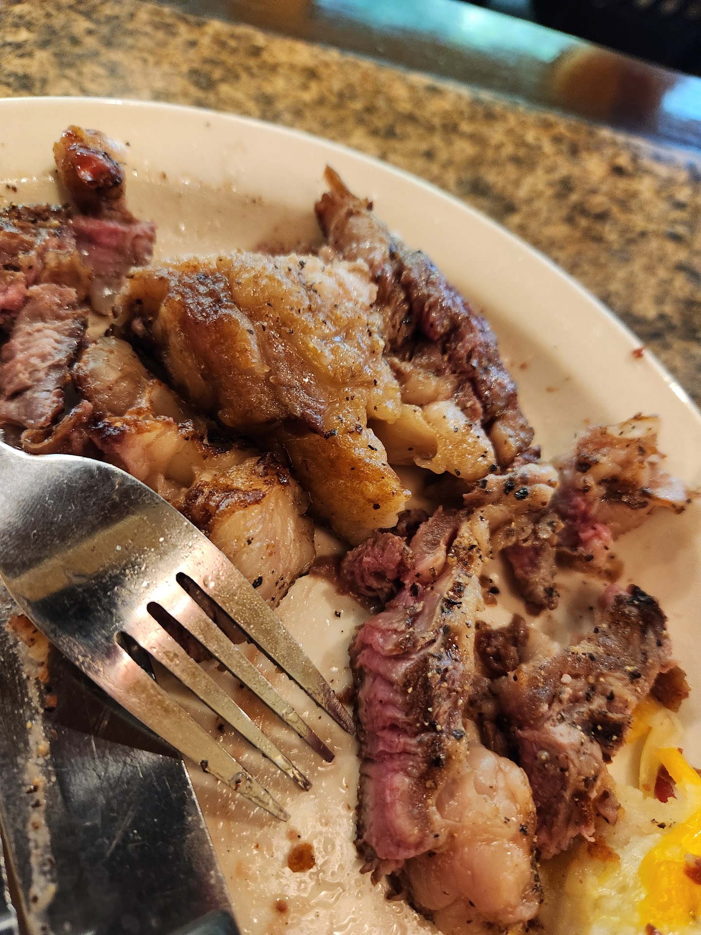 Our waiter Cody was sweating like crazy and I couldn't help but think some of his sweat is going to fall in a drink or food that we order. I honestly wanted to ask for a different server just because of that. He was way too pushy with the appetizers where it felt like he was a salesman trying to sell us something and wouldn't take no for an answer. It was obvious none of us were interested but he kept going. He didn't offer us complimentary bread until we were already waiting like 25 mins for our meal. Later on he was no where to be seen we'd have to wave him down for service. Service was terrible. Refills for some and none for others. Zero condiments provided. Fries had 0 ketchup. Burgers were over seasoned with pepper and so were the ribs. Ribs tasted super spicy in some bites as a result and had lots of fat. The steak had zero seasoning and had to ask for A1 steak sauce. Ordered 2 baked potatoes and one came fully loaded and the other one wasn't. My mother was unhappy since that was her baked potato that showed up different from mine. It was brought to their attention and instead of re-doing it for her they only gave her sour cream and some butter. It was still missing the chives, bacon, cheese, and etc. Mine had 0 butter and sour cream. Ribs weren't tender, were tough, not enough BBQ sauce, and the last one had a clear inch long hair stuck to the bottom of it. Overall, it was disappointing and very overpriced for what it is. Burgers are better and cheaper at Hall of Flame. Ribs are way better at Circle J BBQ. it's evident they raised prices and after this new reopening that they have a lot of amateurs working there. Not recommended at all. I was unhappy as well as the 3 other family members I went with. I don't think we'd ever go back. it's sad that you give them another chance after a re-opening just to get burned again. We told the waiter all of our complaints since he wanted a review for the new chefs. Nothing was offered as compensation. Other places would easily give you a refund, offer you a free meal, or a discount. Very unprofessional.