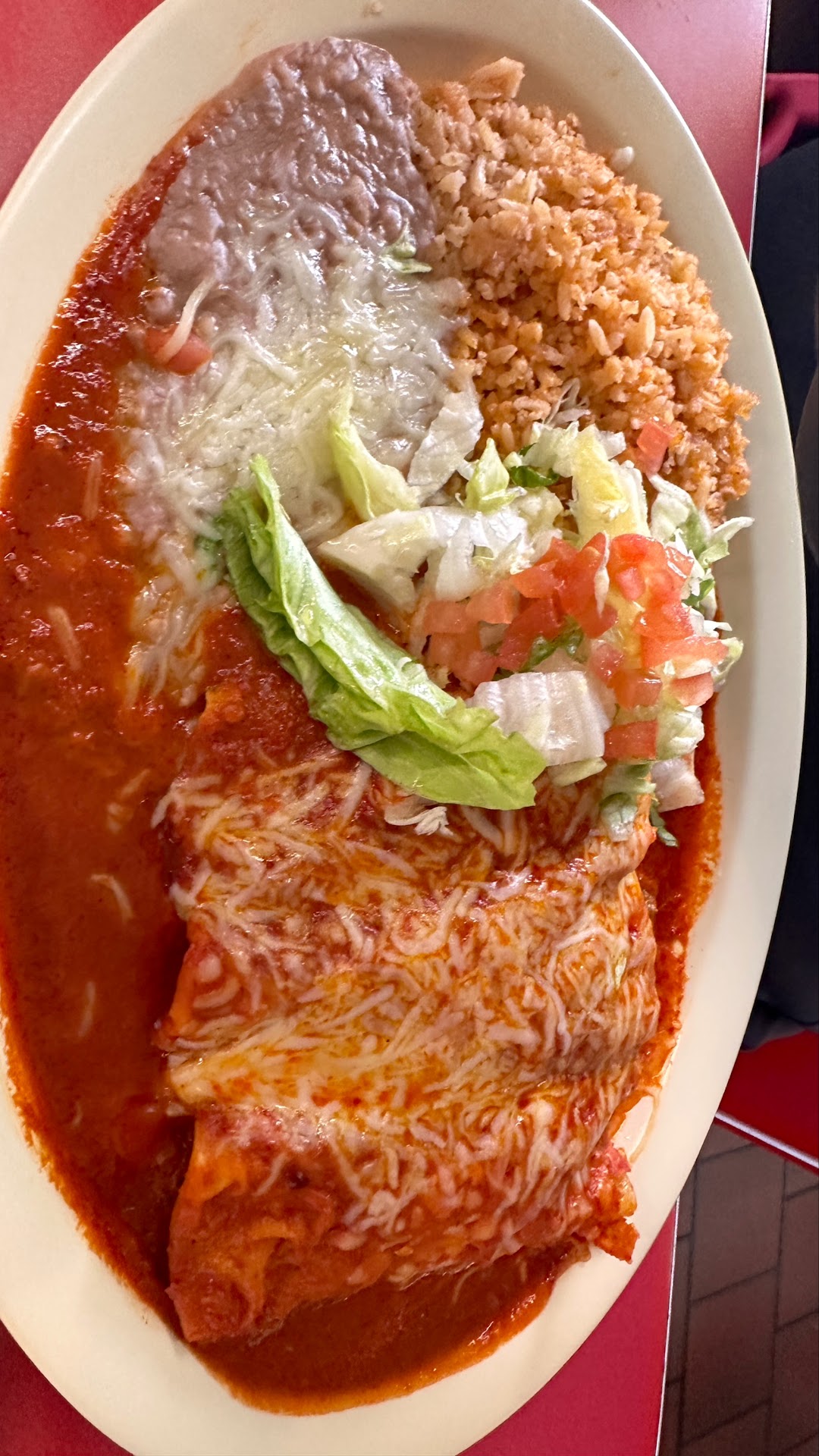This restaurant shocked me but how dirty and how unwelcomed we felt by our waitress whom I believe is named Maria. I started to feel like an inconvenience when I said thank you for anything she did. She replied with, "Yeah" or "Uh huh" or sometimes not a word back. I feel like you should always come back with a response that is welcoming and polite. I go to restaurants in El Paso where I'm from and they always reply with a delighted response or a "You're Welcome". Next thing about our waitress is that she kept her mask under her nose and walked around like that with other guests and in the kitchen. We are still in a pandemic obviously, but that isn't the straw that broke the camel's back. I asked for a refill of my drink and without me asking for ice she brought us all extra ice in a cup and poured the ice into my wife and daughters glasses while covering the cup with her hand to prevent it from spilling elsewhere. I found that extremely gross to be touching the ice that was going into my drink with a hand. I asked her not to touch the ice she was pouring into the drink and she had the audacity to rudely ask us if we wanted a new glass. The food was decent and fairly priced. The cleanliness of the bathroom according to my kids was equivalent to a Porta Potty and they refused to go back in there. I think if they educate the waitress about what to do and not to do this place could do better. Won't be back unfortunately for a...