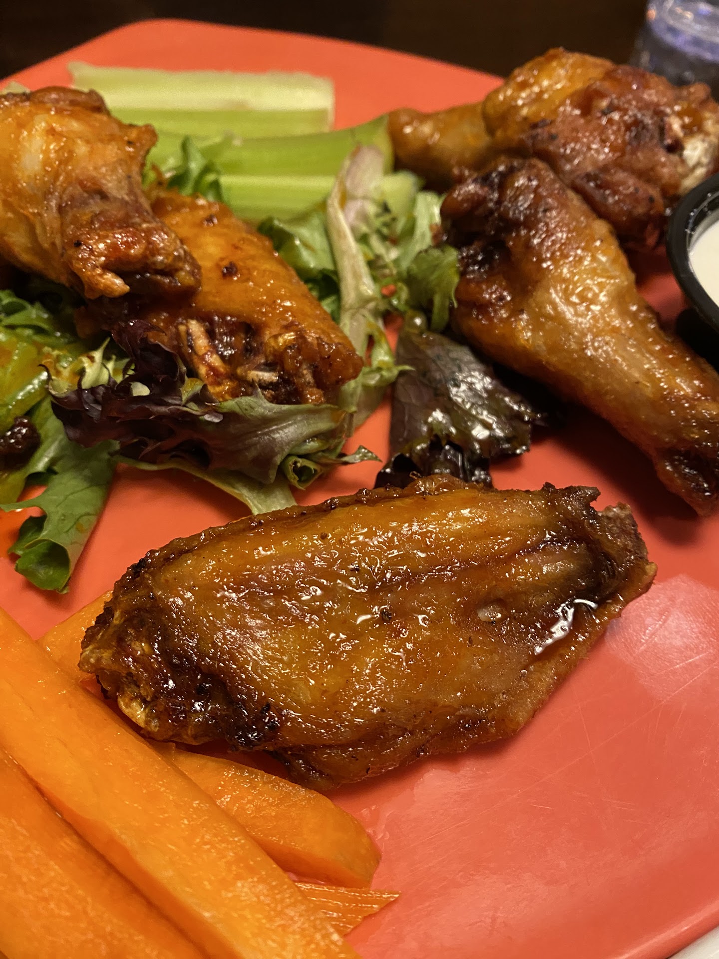 ————————————————————————— Made it out to Rio Grande to try out their wings and other things, we've been hearing good reviews from others. We were not disappointed!! The parking looks bad from the street but there's some behind the building. We ordered wings, spinach artichoke dip, fish & chips and finished it off w a carrot cake. Also ordered drinks; root beer and the hard tea. The wings were fantastic! Perfectly crispy and not too saucy. We ordered 2 orders of 6 so we could try both the spicy boq and the honey sriracha sauces. They were not too spicy or too sweet, a very good blend of the flavors. The carrot cake was devine!! The best cake we have had in Ruidoso so far! Our server actually recommended the cake to us and I'm very glad he did! The spinach artichoke dip was okay, I wouldn't order it again. It was a little too cheesy and more spinach than artichoke and was lacking flavor. The fish & chips were alright, again I wouldn't order them a second time. A little too much batter on the fish and the tartar sauce was bland and the coleslaw was watery. The chips were perfect though!! Best fry I've had around Ruidoso so far! The root beer was delicious and their hard tea was pretty good, we were offered a chance to buy some to-go which was cool. The restaurant is really cozy too, all wood and warmth, and the tables are located upstairs. That was nice bc you can be away from the bar area to enjoy your meal w a more restaurant feel upstairs. Definitely recommend and we look forward to going back to try some...