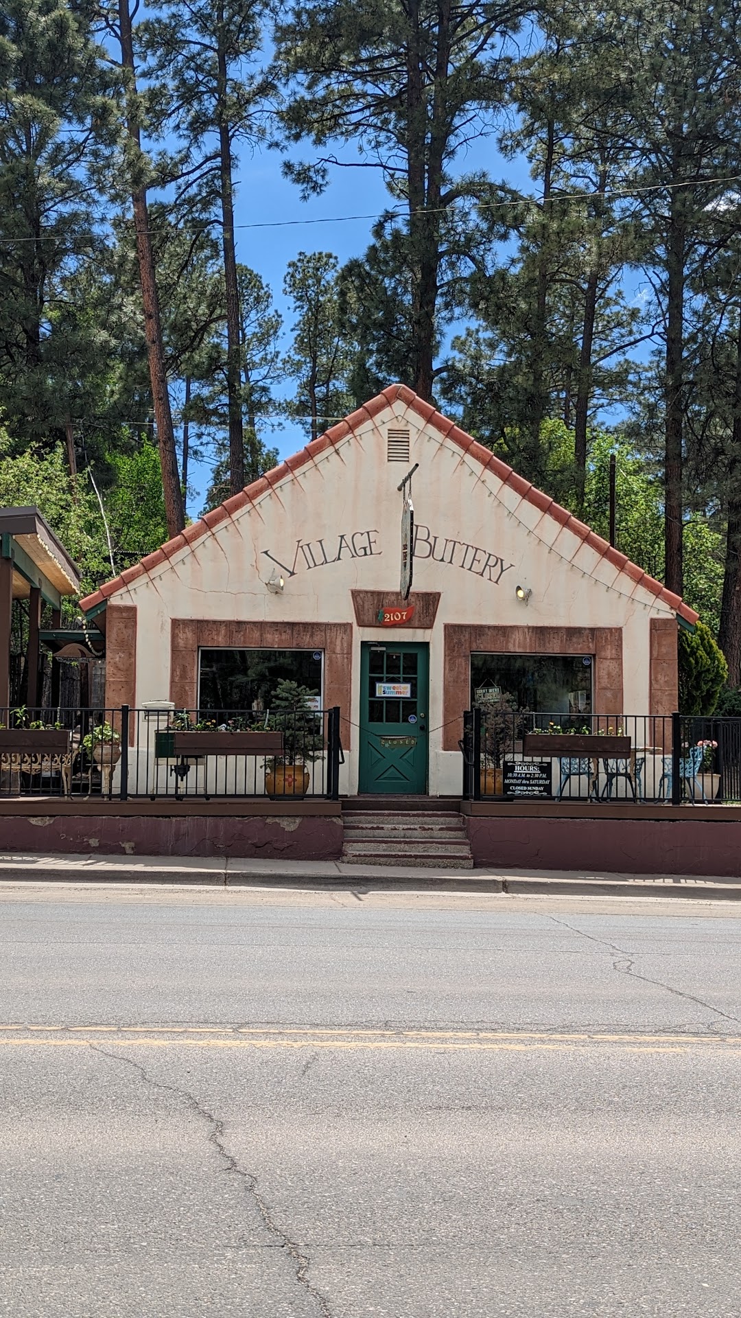 The Village Buttery justified my entire visit to Ruidoso. The place has a nice shade to combat the scorching New Mexico heat, and it gave the place a nice vibe. One of my favorite parts of the location was the nice view of the luscious woods and the various things plants growing there made it feel even more homey. I ordered the Tavern Ham Sandwich and a Basil Soup. The ham and lettuce were nice and cool, but I unfortunately couldnât really taste the cheese. The soup was the highlight being rich and creamy, it was flavorful and I found myself occasionally dipping the tasty chips into the soup. All of the bread here was home made and it shows Iâm the best way possible. The service is kind and friendly and they are walkways willing to make adjustments for my party. For the desert I ordered a butter cream pie, as soon as I took a bite I was instantly transported to a fluffy and savory paradise. Do not skip desert here.