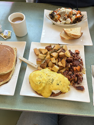 Read moreHad a Boston cream pie for breakfast and friend had a 3 eggs and side. Coffee is NOT included with your meal. (When a waitress offers a coffee before you even had a look at the menu, to look at the price, or to see if it's included with anything on the menu or not, I assume it's included with the price of your plate). (Again, different country, different customs.) Maybe I wanted a smoothie, or just a glass of water, I'm not here to tell you how to do your job. But where I am from, it's customary to bring a glass of water, to allow the customer to drink something before actually choosing something from the menu. ... My friends' eggs were overcooked, he had asked for slightly over-easy with a runny yolk. It was barely runny at all. But, the Bacon was pretty good. My pancakes were OK. Not the best, not the worst.
