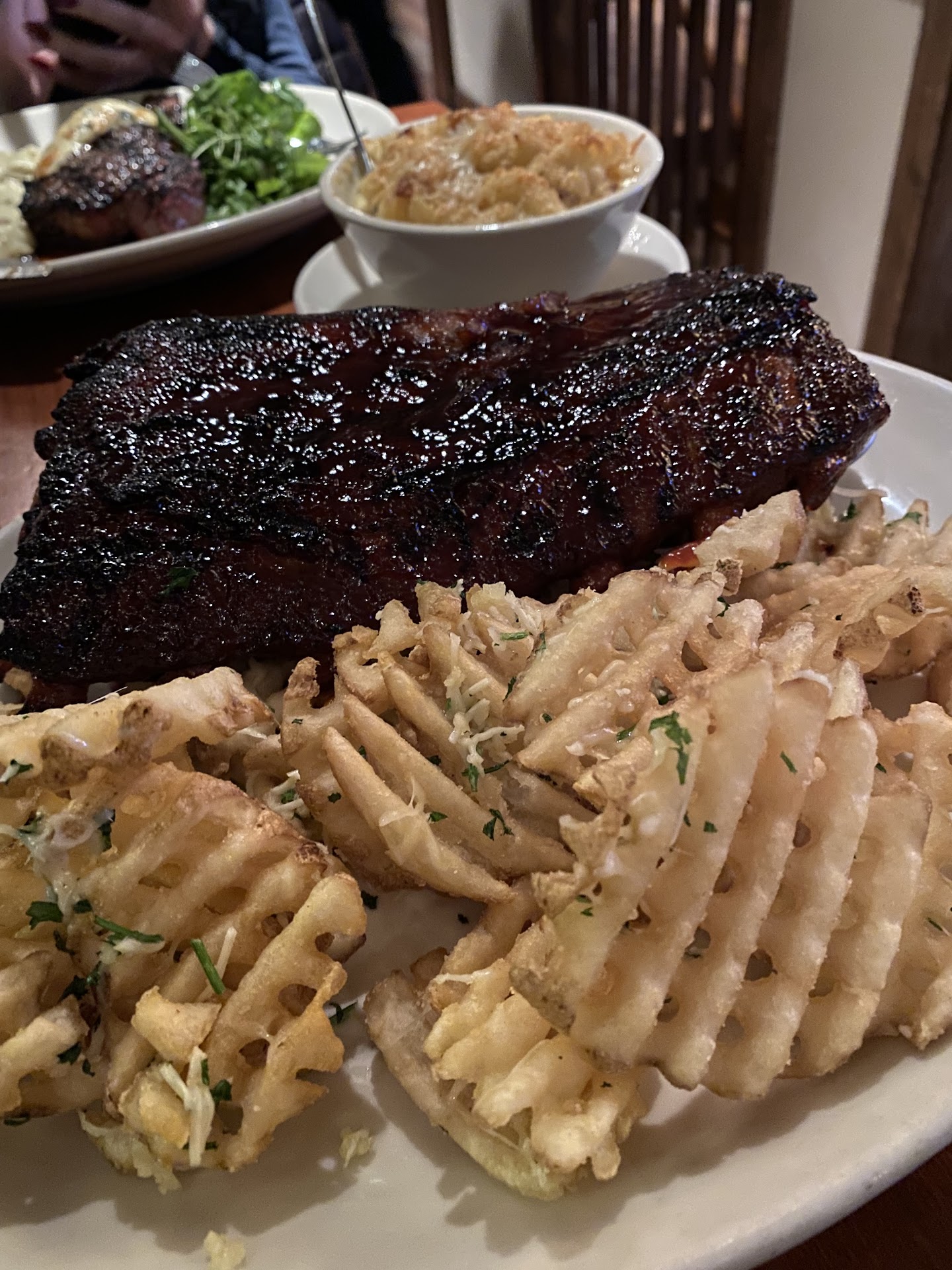 I had the rib rack with waffle fries and a side of Adult Mac and Cheese. Salt Creek wasn’t kidding when they said it was meant for adults because it was the best Mac and cheese I’ve ever had. The level of depth of diff varying cheese was so rich and amazing that no words can describe it. You have to sample this dish to realize you’ve reach Macaroni and Cheese nirvana. The waffle fries were amazing as well. No homemade ketchup needed because the Asiago cheese and garlic was perfect and did not need any condiment to destroy its harmony. The rib rack was a full set and perfectly priced at around mid 30s. The meat was tender and was pulled with ease using a fork.
