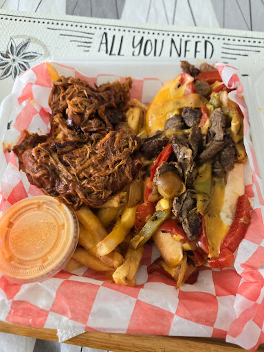 Read moreThe fries, plain were the best. The Hillbilly Fries were ok, especially with all that pork. Maybe a little less pork next time. I thought there was going to be some sort of sauce on top, like more BBQ or aioli and maybe some cheese too. Same goes for the loaded fries. I was expecting green onions and some type of sauce. I did put ranch on top, but it wasn't enough. The chicken fingers were way over done. We actually got sick from them. As for the Philly and sausage, I was expecting a little more. They call it a sandwich, but it doesn't present like a sandwich. I would have like possibly mushrooms and a bigger bun, some type of aioli or special sauce to make it taste less dry. The meat for the Philly was ok, not overly overcooked slightly. Other then that, I probably will not eat...