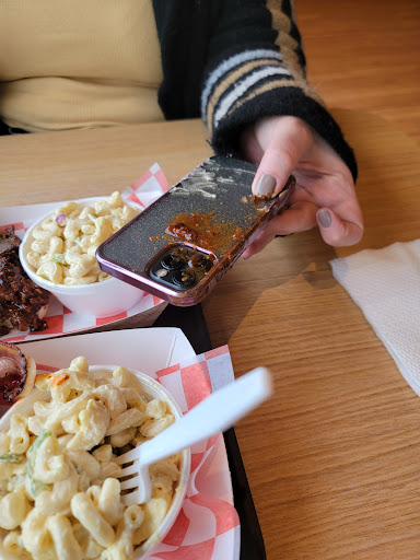 First the food and service. It was counter service. Somewhat of a tradition in Southern BBQ places but behind the times in modern BBQ restaurants. Service was friendly but not at a "Glad to see you! Welcome!" level. Although they were out of baby back ribs they substituted with St. Louis style and a few extra ribs. The flavor was good but had a bit more chew than I prefer. My wife enjoyed her pulled pork sandwich and we agreed with my son that the mac and was very good (which is a great review from a kid who prefers his from a box). We all loved the sweet potato fries and the Cole Slaw was pretty good.