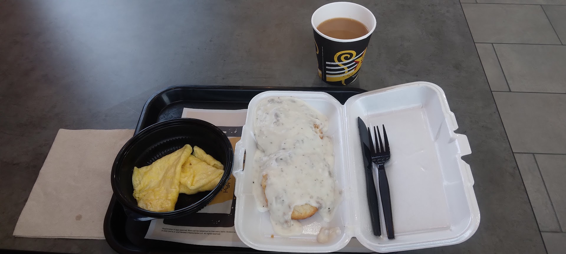 Excited to have a Hardees in town. Went this morning to get my fav breakfest item a Loaded Breakfest buscuit. I passed by yesterday and was not sure if they were open to the public. I had seen them training last week and there were cones in the parking lot. With the cones gone and a few other cars in the lot I decied that they must be open. A note on the sign saying now open would have been great. Went through the drive thru. The screens were bright and clear. The speeker was loud and clear. The employee heard me clear. The voice tried to up sale me twice and suggested other items 3 times. A bit much on the upsale. I almost passed up the first window because lets be honest 80% of most windows these days dont have a worker. At the 2nd window my order was ready right away! The girl repeated my order to make sure it was mine and asked if I needed any condiments, and wished me a good day! A 10 min drive to work and I was ready to enjoy my combo. My hashbrows were still hot and crispy! THe Oj was cold and fresh. Now for the Loaded omlet biscuit. The Biscuit was flaky and moist, THe cheese was in the center of the biscuit and not off to the side. The omlet part was a little lacking. Usualy it fills the biscuit and hangs a little off the side. It seems this omlet was down about 1/3. It just did not seem it had enough omlet. I hope to order my fav biscuit meal again with better results. I know it is only their fist week and they are working out the kinks, I hope that they are in Russell Springs for many...