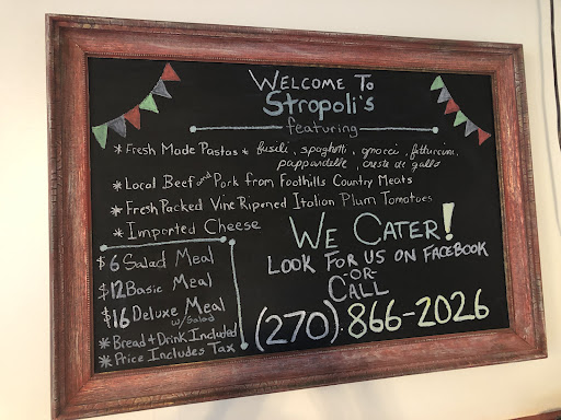 If you're looking for an amazing Italian meal in Russell Spring, KY, look no further than Stropolis Famous Pasta. This place is a hidden gem that truly blew me away. The staff was incredibly friendly and knowledgeable about the menu, and they made great recommendations. Now let's talk about the food. Wow. The pasta was fresh and cooked to perfection, and the sauces were bursting with flavor. I tried most of the menu and it was hands down the best I've ever had. The ingredients were top quality and you could taste the difference. The menu changes daily so it is always the freshest, salads, and desserts, IS A MUST. And to top it all off, the prices were very reasonable. Overall, I was blown away by the experience at Stropolis Famous Pasta. The staff was friendly and knowledgeable, and the food was simply amazing. I would highly recommend this restaurant to anyone in Russell Springs, KY or the surrounding area. You won't be...