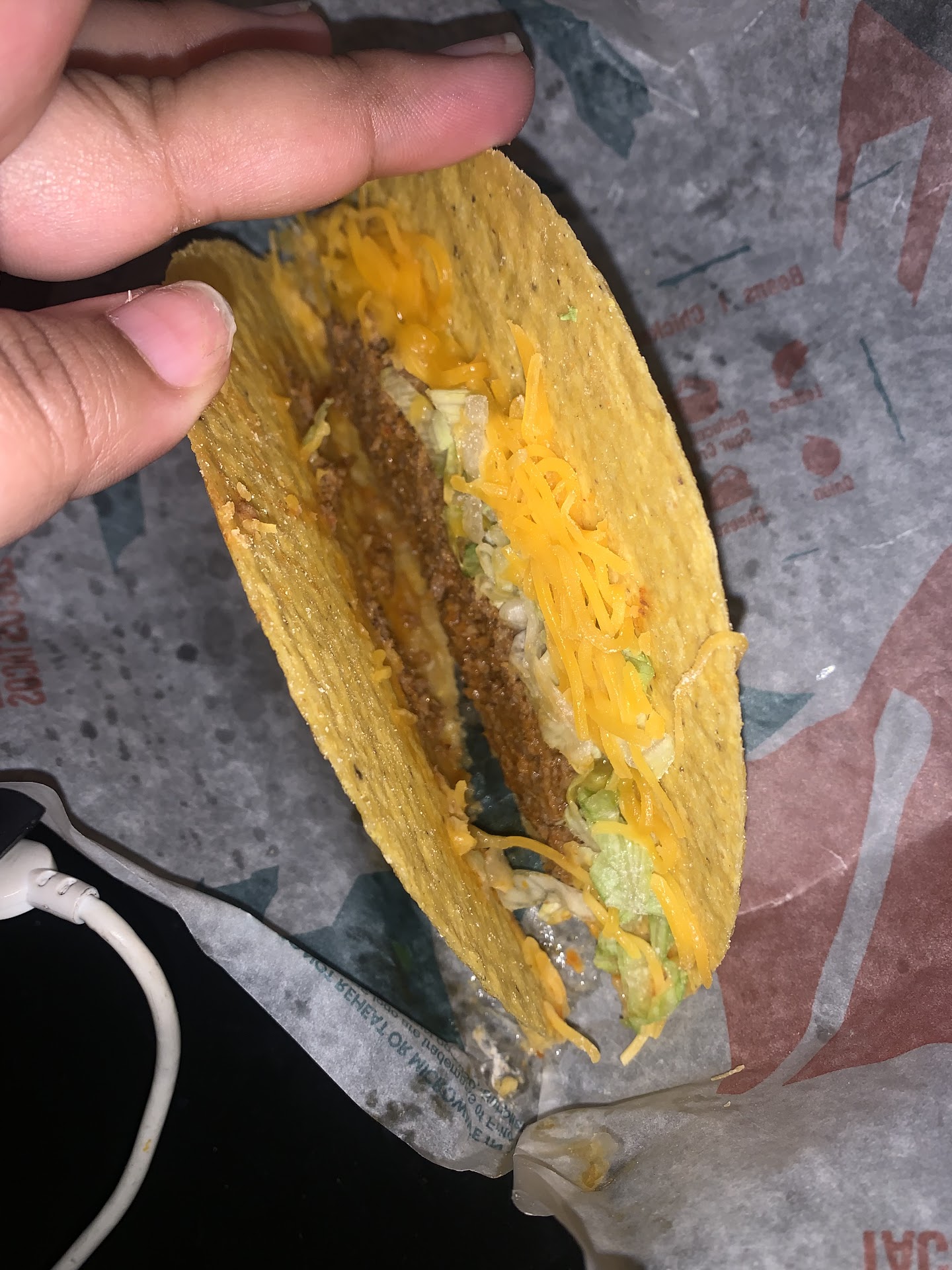 Usually if you come during the day, the food is really good. It's a hit and miss on the chalupa due to the shells alot of time are so hard. At night time, it's a bad time to go. You never know how it will be. You have the goofy ones that look at you stupid when you tell them the food is wrong. Those ones ask for your receipt and if you order in drive thru but they never give you the receipt. If it's not those ones, then you deal with the lazy crew. Beans are dried out, they never put much in the tortilla and you are pretty much eating only the shell of whatever you get and choking due to dryness. This crew is also rude. I had an order that was completely incorrect and I saw a worker heading in and was gonna tell them, they let me know that the inside was closed and to go back in drive thru. Didn't apologize or nothing. It took 40 minutes the first time when I ordered and another 30 to get back around to get it all fixed. On top of that, they were rude about fixing it and asked if I got it at that taco bell because it was ordered so long before. Night shift never gives us a receipt, so I couldn't even show it to them. I'm to a point, I'll only go in the day time. They only skimp out on giving us sauce but I just get out and go in and get more. 5 packs is not enough for 3 bean burritos, lux cravings box and 2 tacos. I'm adding pictures of my bean burritos from tonight with...
