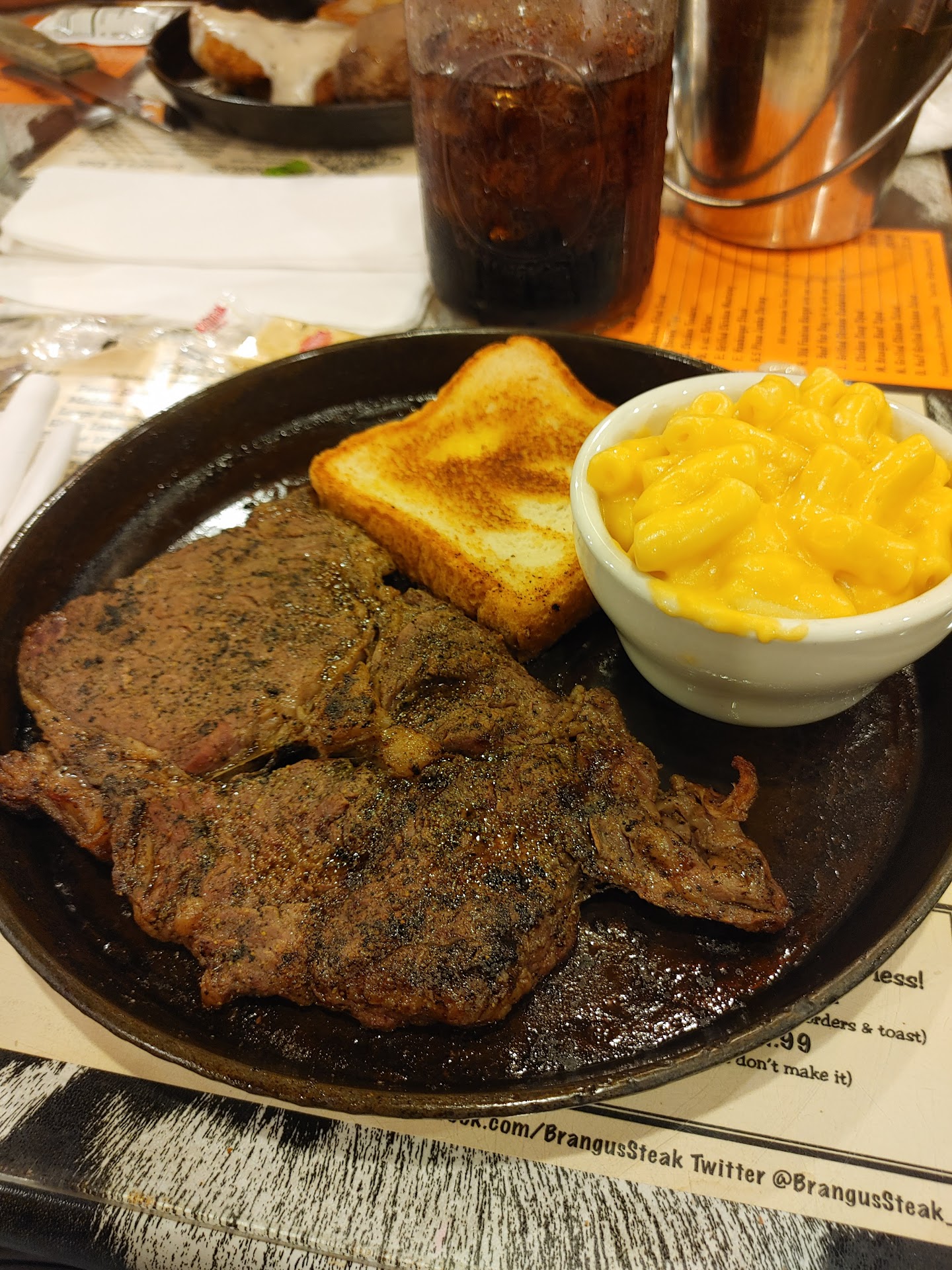 Read moreI really enjoyed dining at Brangus. My dining experience was a working lunch. However, I found the place quite enjoyable. It had an old steakhouse charm, and the food was really good. I had the 16-oz ribeye with green beans and cajun fries. The green beans were a touch overcooked (for my liking), and they lacked any noticeable seasoning, and the portion was on the small side. The cajun fries were good. I felt they were not very spiced for "cajun" fries. The fries were good and crispy, though, and the portion was good. My steak was very good. It was very simply seasoned (salt and pepper) and cooked exactly how I like it. There were little buckets of peanuts on the tables to enjoy while waiting. The drinks were served in large mason jars (I loved that). Overall, I found the experience good, and if this hadn't been a work related meal, I may have been able to savor the food and...