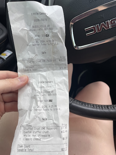 This place has horrible customer service and the wait time for what is supposed to be hot and ready pizza is insane. So I ordered through the app because it says it would be faster and I knew that on Friday Night they usually run out of pizzas, ask me how I know. So I just ordered two cheese pizzas, just the same plain cheese pizzas you can drive up and get at the window. I placed my order in the app at 4:03 pm. I ask for pickup at 4:30 pm, the app said no, too soon, so it let me choose 4:45. Okay, why do I have to wait 45 minutes for the same pizza they have ready on demand, but okay I had an errand to run, so I went ahead. When I got there at 4:48 the lady in the drive through speaker says "pull around hun, we'll check on that", well I decided to check the app and they hadn't even started my order yet. So I set in the line another 10 minutes and get to the window finally at 5:58. The girl at the window, says sorry we haven't started your order yet. I'm like why? I ordered almost an hour ago and it said I could pick up at 4:45 and it's past that now. She said I know, its frustrating isn't it. Just pull around there and I'll tell them you are her. Well I did to the first spot right in front of the door you walk in. My son and I watched over 10 people walk in and and walk out with multiple pizzas each, while we waited another 30 minutes!!! I finally get a text telling me to go through the drive through, the one that was now wrapped around the building, to get my food. I had to end up going in, they never brought it out like she said they would. So I go in and ask for my pizza, she ask my name, I give it and explain that I've just getting my pizza that has been ordered over an hour and a half ago. I ask her why so may people could walk right in and walk out with pizzas when I was waiting so long. All she said is "they get these hot and ready in the case and you ordered online, that's way'. I said so what is the difference in my cheese pizzas I ordered and those right there in the hot case. She said "nothing". So naturally I was even more upset, because why could she just give me two of the hot and ready since they were exactly the same. She says to me "those are for people that just walk in and order or pull up and order" not for people that order ahead in the app." I mean, she and the lady at the drive through couldn't care less about my experience or the pitiful customer service I received, but I'll tell you one thing, I'll pay $40 for pizza before I order from this place again, it is cheap crappy food, that works when you are in a hurry, but when that cheap past food takes 1.5 and actually causes us to be late to our next place we had to be they can keep that crappy food and their pitiful customer service. They never once apologized or offered to make it right, so just be warned this pizza is not worth it, even for the deals in the app they want you to use that caused you to be forgotten and...
