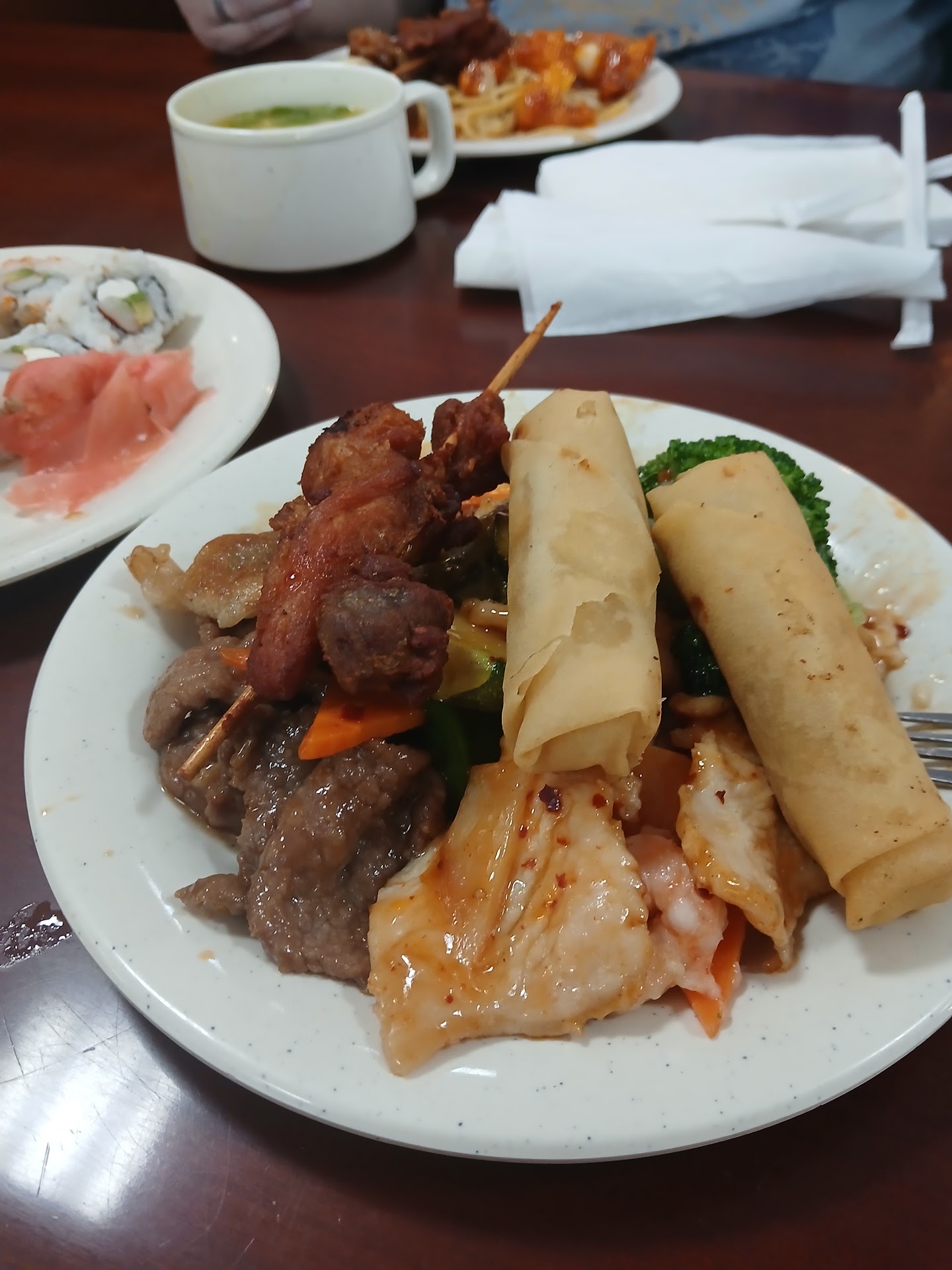 Read moreI haven't eaten here in a very long time and now I remember why. I was greeted, and taken to a dirty table that they were coming to clean. My drink order was taken and I was told they would put my silverware on the condiment holder near the wall as the table would be wet when they returned. I made my plate and dipped out a cup of hot and sour soup. To say that the meal was bland is an understatement. None of it tasted bad it just didn't have the flavor I was hoping for. The soup was not very hot and definitely no "sour" to it. It tasted like water. Nothing had much flavor at all. The atmosphere was expected. with the exception of the bug zapper in the upper corner with a table positioned directly under it. I hope no fly gets zapped and falls in someones food. The price was comparable to the other Chinese buffet across town. The service was friendly though so I gave it an overall...