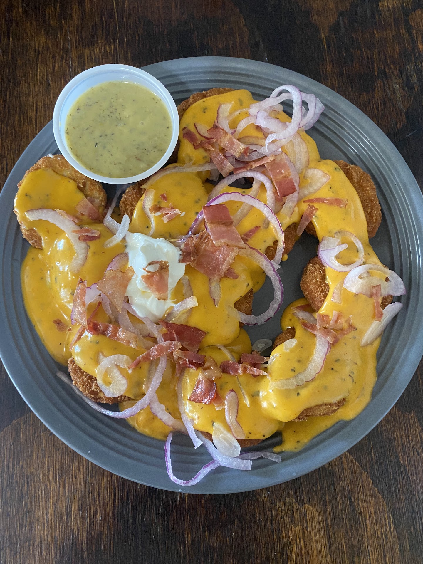 There are more problems though. Beware the "beer cheese", I have no idea how he makes it, BUT it tastes pretty much exactly like gas station nacho cheese. Cheap and nasty. Additionally, the chili is bland and virtually meatless. The “loaded” (chicken) nuggets were obviously grocery store flavorless lumps.