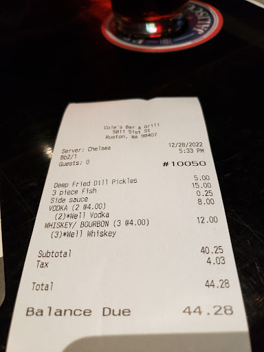 Let me propose sitting on the deck at Cole's sipping a bramble and watching all the folks coming and going to who knows where. They have a single row of stools along the wrought iron fencing looking out to infinity...or at least north Tacoma with a great peek at the sound. The speakers are nicely balanced between loud enough that you can hear the music and can still hear the conversation. Practically perfect if you were going so far as to give a Mary Poppins rating...