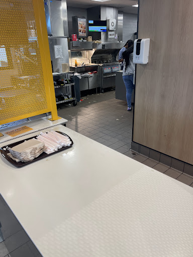 This is quite possibly the dirtiest McDonald's I've been to. I'm not talking about superficial dirty with a few pieces of paper and drink spilled about because the employees are busy. There was a feeling of gross permanence in it. It's just dark, dirty, and greasy all over. A random 14" television played a fuzzy picture in the order area and attempted to cover a dinner plate-size hole in the drywall. The floors were so greasy I could feel my feet slipping when I walked in the door all throughout the dining area. The drink station was filthy. The ketchup dispensers had no ketchup in them, (at 8 am) but they had crusty ketchup covering the spouts and water-soaked leftover ketchup in the catch trays below them suggesting that ketchup has been in them in the past day or two. The employees, not overly friendly, but not overly rude, moved at a snail's pace, and were seemingly understaffed. The door to the mini-fridge that held the milk and parfaits was left standing open the entire time I waited in line to order. It was standing open again when I had to return to the cashier to ask for an item left out of our order. We told the cashier we wanted dine-in when she asked our preference, but we were given our order in bags. Perhaps they didn't want to clean any trays? We had to wipe our table to eat as the people seated ahead of us were very messy. The food was what you'd expect from any McDonald's, though: low quality and over-processed. So, I wasn't let down in that department. I knew what to expect there. I don't even care that our order was messed up. They were very busy, and I understand people make mistakes. But, the level of gross in this place is unacceptable. I can't believe any business owner would accept these conditions in his/her business. There is a Whataburger within sight and just east of this place on the service road. I wish we'd have taken a gamble...
