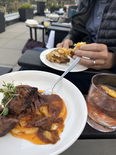 We went back that evening for the live music and small plates on the roof. It was a bit chilly, and once again they were sold out of the items we wanted, but the things we did try were very good. Excellent negroni. Succulent short ribs. Music was ho hum (they'd do better hiring some of the UPS jazz kids) but the views were fantastic and the grilled cheese the best I've ever had, crispy and seasoned well, a mixture of coastal cheddar and something gooey, and again the bread redolent of piquant levain with a crunch in every bite. No drippy oil. Whomever is in the kitchen knows his/her stuff.