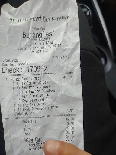 Update: 2/4/21 Yet another shining example of how Bojangles in Rutherford College goes above and beyond in their food preparation and service. Literally no one else in the drive thru line and theyāre still struggling to give customers items that resemble food. See...