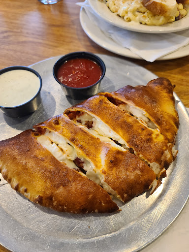 Let me say: the Server was fantastic! He was very friendly, he was a joy to talk to and was a great server. He earned the tips we left. Sadly, my food wasn't great. We had appetizers, they were good. I ordered a Calzone (I don't eat pasta sauce) Calzones-when made correctly, don't contain sauce inside, they are served with marina on the side. I was served a version of a soggy stromboli, I am not a foodie, but I know some stuff. My 'calzone' was soggy, had 'pasta sauce' IN IT, and the platter it was served on was WET with canned mushroom 'brine', I Know salty limp shrooms come from a can, fresh mushrooms don't have a SALTY taste, the liquid would have been clear and there wouldn't have been so much. Again, the food I ordered wasn't close to edible, and despite my friend insisting I simply eat the 'insides' I couldn't, canned mushrooms are GROSS compared to the fresh ingredients I was expecting from a 'pizza joint'. The garlic bread we had was sort of burned and my friends personal pizza crust was black and some they didn't eat because of the hardness of the blackened crust. I don't usually order dessert but I did. It was Fried Dough Bites, there was a lot, I offered some to my friend. I had leftovers from dessert. I can only say, don't eat food if it's not made the way it should be. I wasn't charged for the calzone, I hope the cook learns the difference between a calzone and stromboli, they should be stating they don't use fresh ingredients too, the Burlington location might, but clearly this location doesn't. Go because the staff is nice, but the table we were seated at was so wobbly the poor waiter had to put coasters under so that it wasn't so wobbly, my friend thought they were going to wear our drinks the first time the table moved, they started putting their foot on the table leg to hold it before asking for help. We could have been moved, but instead the coasters were employed to stop the wobble. The place looks nice, but it's a veneer, the staff Is Truly nice, although the cooks need a little more training, Stromboli has sauce, Calzones don't, either way, if the food comes out of the oven, it shouldn't be swimming in liquid...