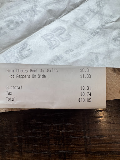 Read moreNot bad but really nothing special or above the other restaurants serving beef sandwiches. The beef was tasty and the roll was soft and fresh. I was a bit let down because the description of the "Cheesy Beef" sandwich was "legendary beef smothered in cheese". I received a beef sandwich with a top layer of mozzarella cheese melted on top. The description of the sandwich had me expecting something more. The sandwich was good but really it was ordinary. Service was not rude or disrespectful but the order taker and the person handing me the order were not friendly but rather just going through the motions. No cheerful greeting, no smiles just strictly business. Lastly the restroom although not filthy it had been sometime since it had been cleaned. I felt this chain was created to be somewhat unique for this type of restaurant but missed the mark with uninterested staffing and lack of cleaning. To be fair I will try another location in the future. To sum it up if you're hungry the food is okay but there may be a better choice as there are many restaurants...