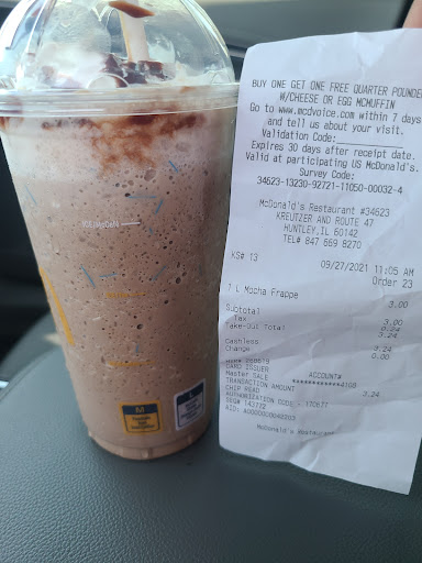 Read moreI went through the drive-through this noon and ordered a chocolate shake without whip cream. The price on the screen showed $3.13. When I got to the window to pay she said it was $3.45, I told her that the screen said $3.13 and she shrugged As if to say oh well, big deal. She gave me back the change for the $3.45 cost. Then after I get my shake I’m driving away and I noticed that there is whip cream in my shake so since the line was really long I called and spoke with the “manager“ but not sure that this young woman was the manager. She also did not care about either issue because Her attitude was “oh well”. Between McDonald’s and Burger King in Huntley neither of them should be considered as an option for food If you want your food order...