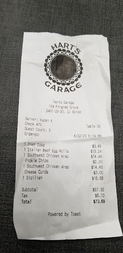 Ā Ā Ā Read moreHeard about this place from friends had to try it out ... Ordered appetizer..Italian beef egg rolls Ordered 2 southwest chicken wraps upgraded sides to cheese curds, n fried pickles And a Sicilian burger with fries well done. First all the food was cooked as asked spot on.. But I'd have to say the Italian beef egg rolls concept though sounds good but lost me on the lack of seasoning in the beef and lack of cheese all the flavor came from the horseradish sauce and a few peppers ...if home made kick it up a notch...if not I'd scratch it and replace it on the menu and for the price 13.00 for 6 definitely not worth it . Southwest chicken wraps though good fresh ingredients lacked the cilantro lime sauce definitely needs more n through out. The burgers are advertised as smash burger which being a major burger connoisseur the words " smash burger" usually means very smashed and thinned out patty, being surprised by the patty circumference and thickness I was thrown off track , my recommendation would be what ever the weight is ( seemed to be a 1/3lb patty) advertised as such.." a smashed 1/3 lb patty" Options are there for 4.00 more or triple for 6.00..over all burger was very good. All 3 sides were perfect from chesse curds 2.00 upcharge, and fried pickles 3.00 upcharge to the basic fries were cooked as asked.... The restaurant it self is made up well being a big car guy myself loved the decor and atmosphere but the metal chairs gotta go lol! Bottom line we will be back to try other items but I know inflation is here but all this put us back 73.69 ..3 people one soft drink n 2 waters... Till the...