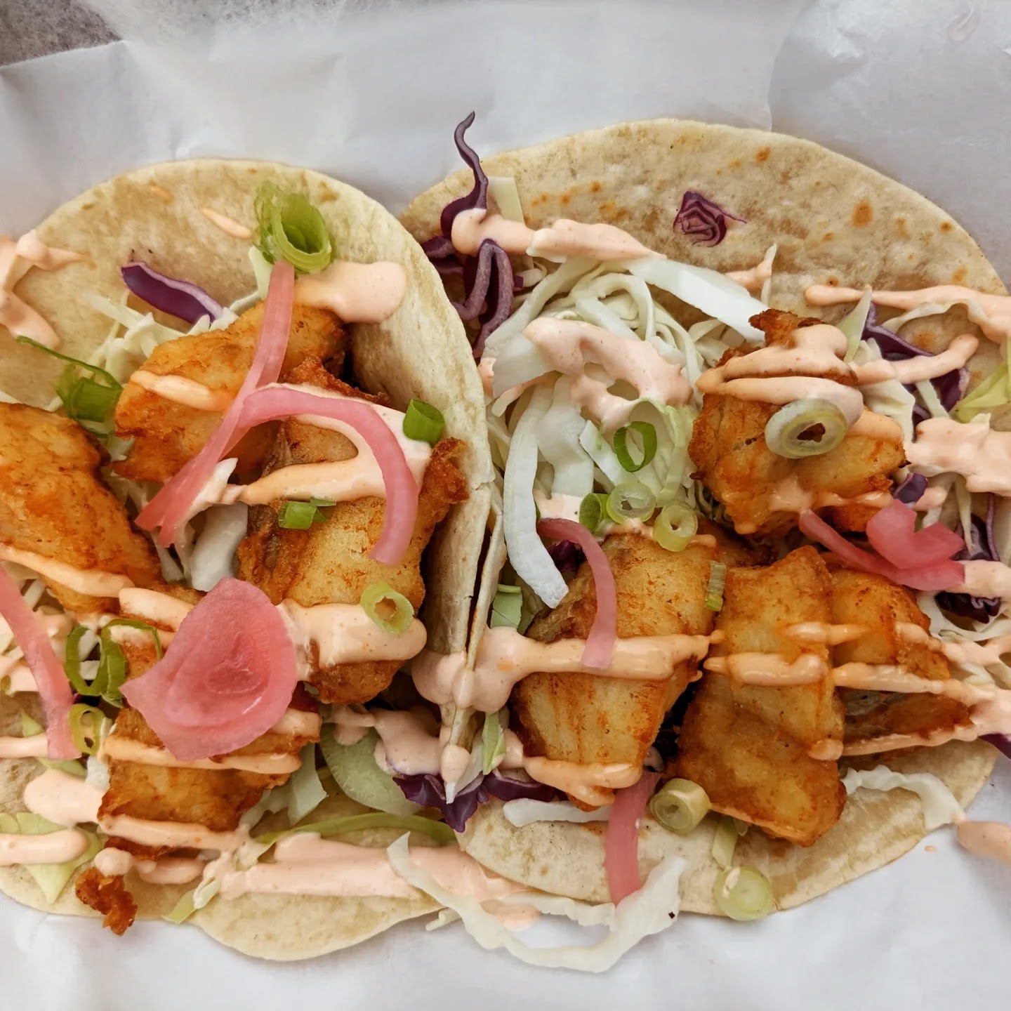 Pros: Tacos were a steal at this price, fresh, and lightly fried perfectly. Served over a dry cabbage slaw, pickled red onion, and flavorful crema. Pro tip, throw a couple scoops of the side coleslaw on the taco to add bonus flavor and moisture. Three bean salad was flavored cowboy caviar style; a sweet surprise and delicious pairing for the fried tacos. Great outdoor space with picnic tables outback to enjoy a Sunday afternoon catching up with a friend. Will return for food and must try the ice cream next time.
