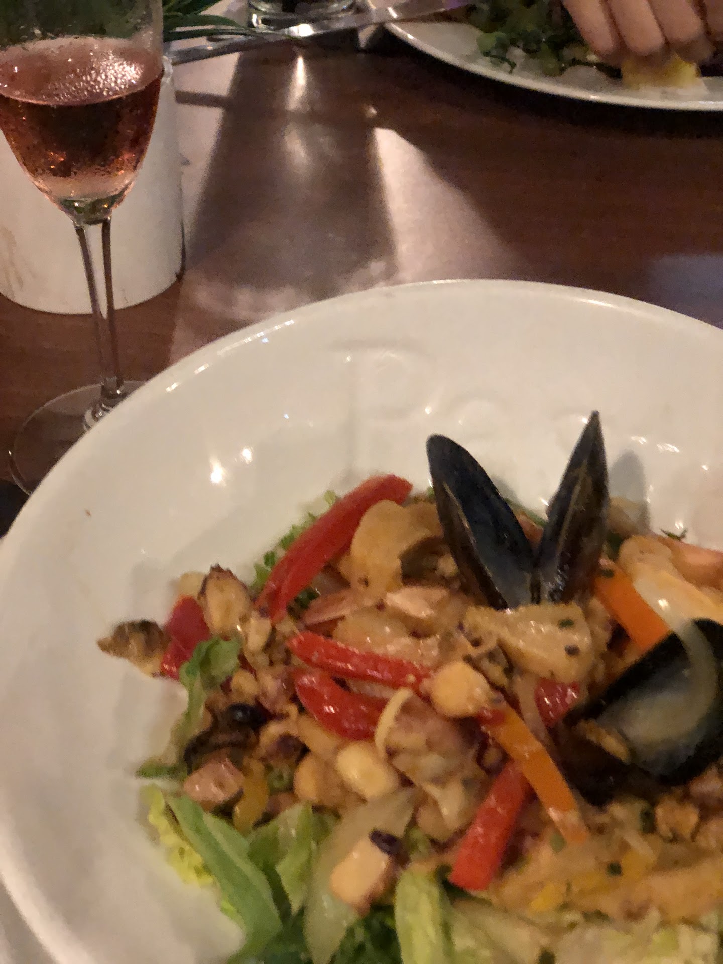This is a two visit review. 1st was apps mofongo, alitas, surullos, tostones all great. Had a little french surprize with the mofongo sauce. A white French creme but well made. On our second visit I went 4 the lobster a 40$ dish. The tail was presented to me by the waitress knowing i would need to wait because they were frozen. Let me tell u it was a total fail not once but twice. Note one should Always prep 4 that one guest that wants lobster and keep one thawed. Sous vide or steamimg would of save this kitchen from the inevitable disaster of bringing a frozen lobster tail to service in 20 min, but no. They chopped it and slathered on the white sauce. Unrecognizable on my plate, a mound of hard as a rock chewy lobster tail with a over baked potato and frozen veggies of broccoli and carrot appered. WT? This is not TGIF, or a cheap steak house, why act like one. Technique is lacking; This night in the kitchen. All while the owner text on his phone at the bar, never once coming over to the table to act like he cared. 125$ later i can say the caipiriñas were perfect and stick to fried food it requires little skill and was...