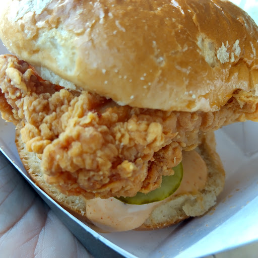 Here are the cons first: I ordered a big and juicy but was served the big and wicked, if I'm understanding correctly. The sweet spicy sauce wasn't pleasant. Reminded me of a spicy pimento cheese/mayo. My fault, I should have said plain. I don't care for the pickles either, so if you don't, give them the deets. The bun on the sandwich was dry and hard on the outside. I was hoping for a better experience.