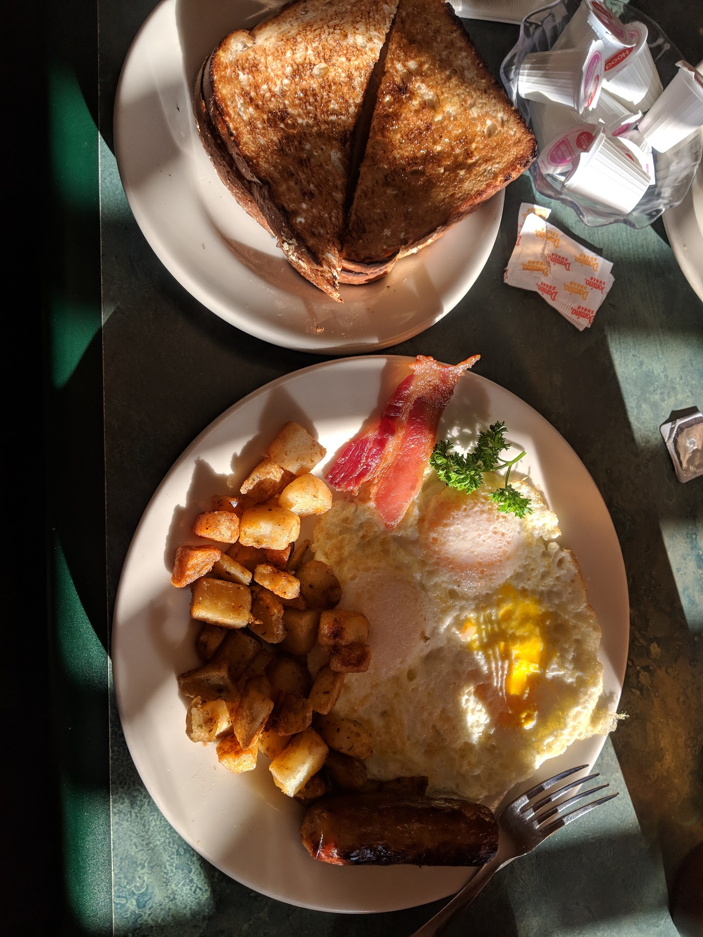 Read moreAs with every place these days we had to give our name and a phone number. The difference here is they also took our temperature. Kudos to them for looking out for their employees and customers. Everyone was masked. This is the kind of neighborhood diner I love. As we were signing in, the waitress called out an incoming customer by name, genuinely happy to see him. We were seated quickly, given coffee and water right away. I ordered the eggs Benedict with seasoned home fries and my husband had a bacon/onion omelet with wheat toast, hash browns, and corned beef hash on the side. I enjoyed my breakfast so much, I forgot to post a picture. The eggs were perfectly cooked, the Canadian bacon was not overly salty as I have had at other places. The seasoning on the potatoes was just enough. We thoroughly enjoyed our breakfast and look forward to going back to try other...