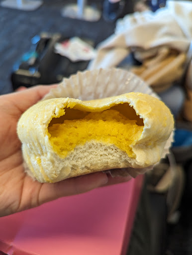 Pictured: Mango bun - there's a picture card next to these in the store. It was pictured with the filling filled all the way and looked more fluffy like but my first bite was extremely sad. Bun was more dense than expected esp bottom portion. The filling was flat and paste like. I bit and scraped off what filling there was in proportion to the bun and threw the rest of it out. Advertising card is awfully off. even the mango paste/filling didn't taste like mango! No sweetness nor tartness from a mango or ...fruit! It tastes like a gourd. Plain. I'm so confused!!