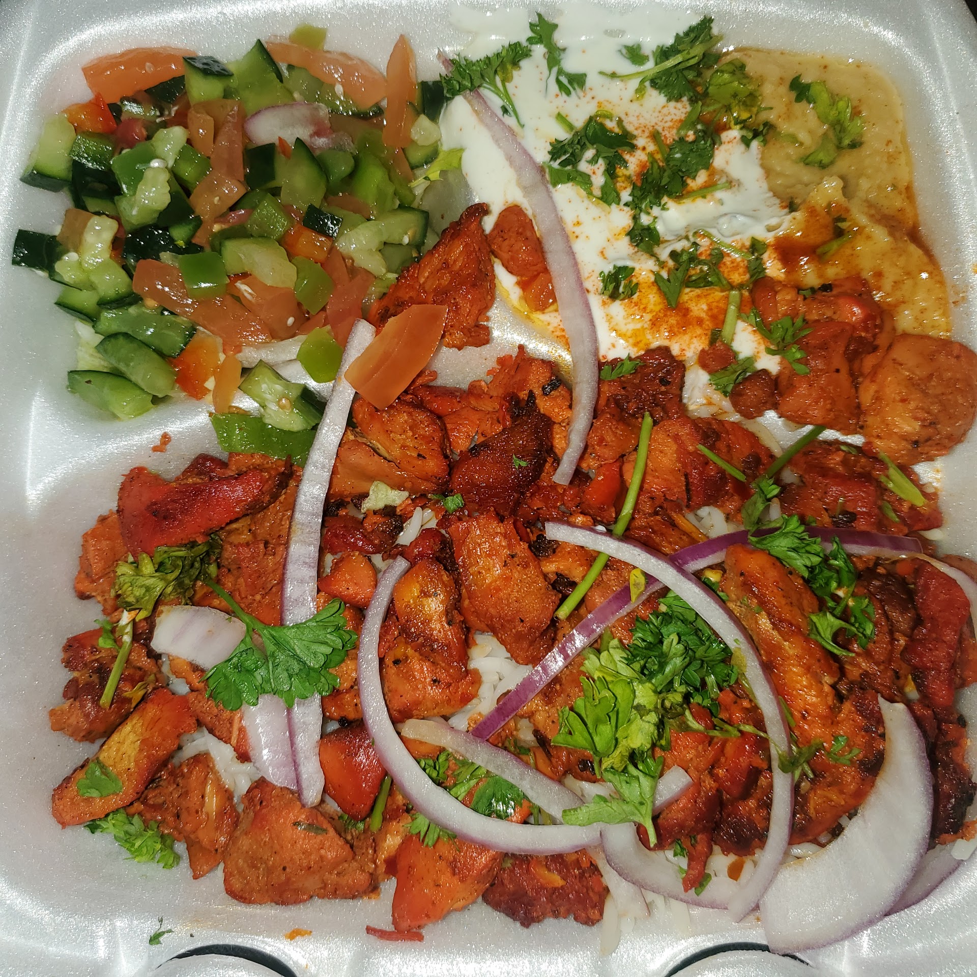 Read moreI was at this place like a week ago and it's decent I don't consider there customer service that great as it seems they only had 2 workers which was the guy who was cooking and a girl who were suppose to be taking the orders but the guy that was cooking who might be managing the restaurant seem like he cared to only get his dine in orders out right away instead of having to take my order first as he told me to go have a seat while he was cooking before having to take my order. First off I dont think it's worth it for almost 20 dollars I paid like 18 bucks for it and the portion was really small felt like. As I take a few bites the rice was more warmer than the chicken as I seen him cooking fresh chicken before taking my order but other than that I might not want to come back to this place due to how high price it is for little portion of food that will not get you full. I've gotten the chicken plate it had too much rice and not enough chicken felt like but who knows I might try to give this place a try again and...
