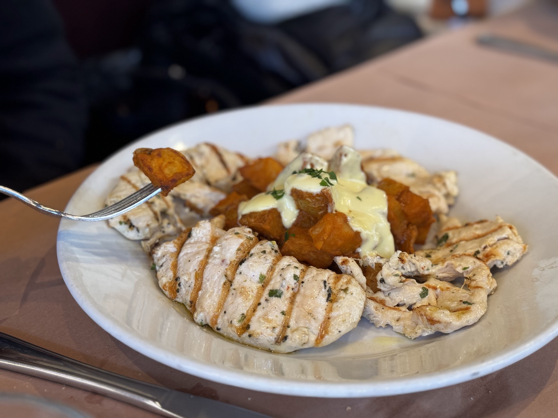 We ordered the gambas al ajillo, which was borderline inedible and tasted like the gambas had been swimming around in sewage before being frozen then quickly reheated in an under seasoned sauce for us to "enjoy". The salmon was OK, but clearly cheap fish and it was improperly seasoned. It was in a simple garlic/butter/oil/caper/lemon sauce. Our second course was pulpo (one of my personal favorites), patatas bravas and bistek. The steak was good, and the accompaniments were excellent. Not very Spanish, more French influenced, but had a nice deep smoky flavor. The potatoes for the patatas bravas were very average, super soggy and not crispy like how Spaniards do it but the sauce was nice.