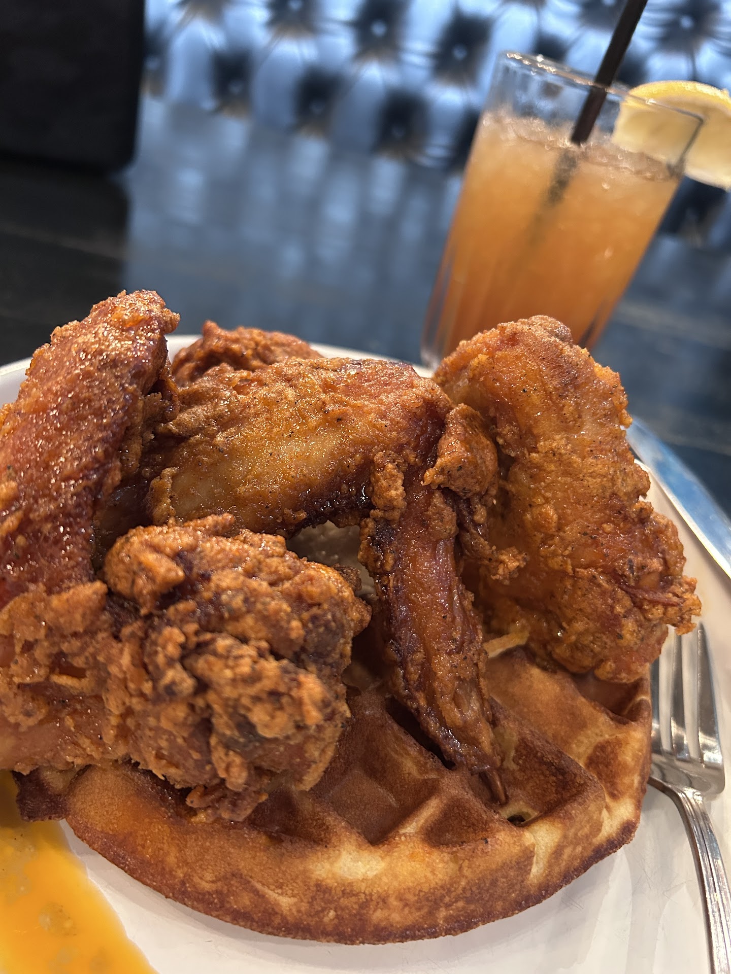 The fries were a delightful surprise with their crispy texture, and the chicken and waffles were unlike any I've had before. Three huge wings accompanied by a heavenly maple butter to pair with the maple syrup made for a memorable combination. It's safe to say this was close to the best chicken I've ever had.