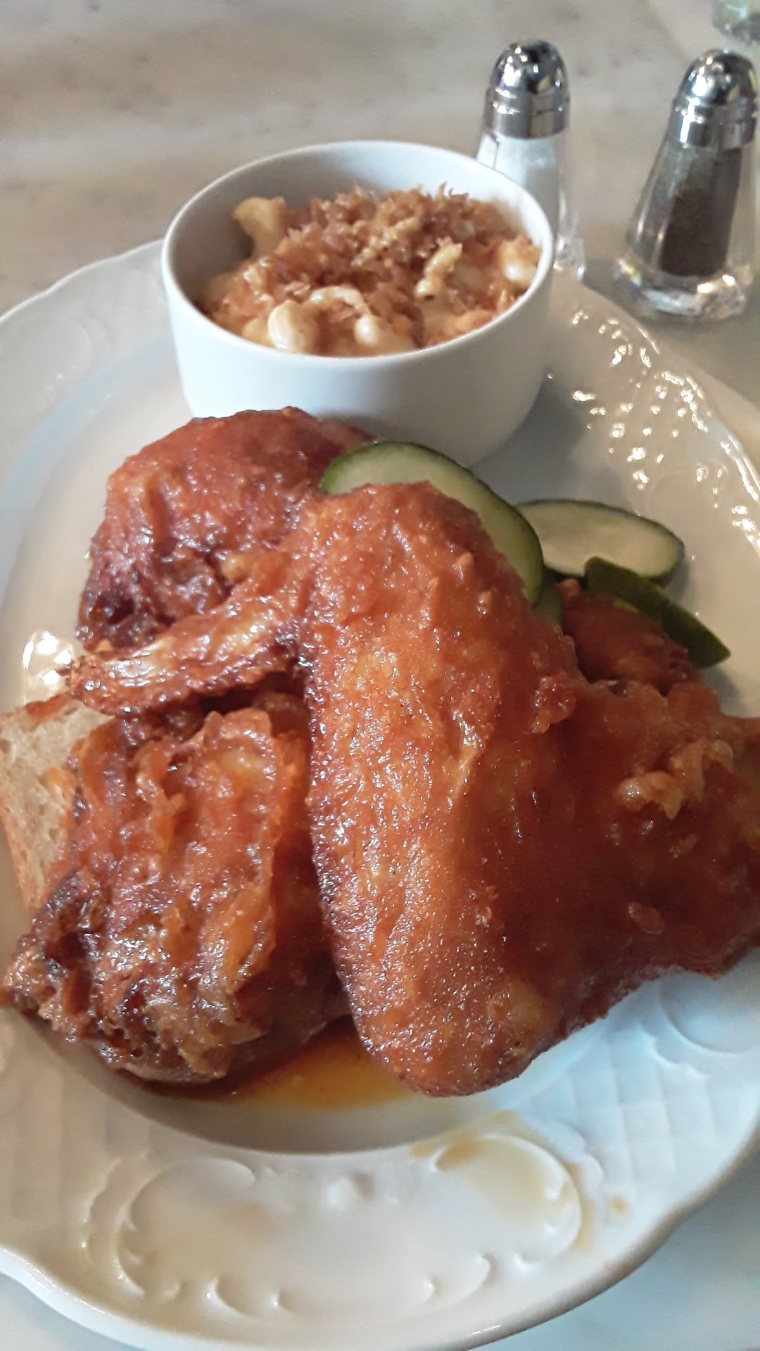 First the fried chicken sandwich, I got the maple hot, large well seasoned piece that was very juicy. The slaw with the pickles were a perfect accent to the meat. The chicken and waffles, we subbed strips in place of wings. Strips were lightly breaded and fairly moist. While the waffle was amazing! The batter they use is flavorful and the waffle is light and fluffy. And their maple butter is the perfect addition. Then there are the Bawk bites, some of the juiciest dark meat boneless bites you will ever have! Next was the Catfish. The breading was very light and that allowed the fluffy and glistening Catfish flavor to come through with force. An absolute must have if you enjoy fish. Biscuits and gravy, I'm a stickler on this one and believe me when I say, they delivered. It's a brick style biscuit which is usually dry in the middle but this one maintained good moisture throughout, and a gravy with just the right amount of sausage... lots, lol. Cornbread muffins are great, definitely on the sweeter side though, moist and served with that maple butter, delicious. Next is the smash burger, anyone who has had this burger knows the style. Always great flavor but often dry. Not here, they got the moisture balanced perfectly and the sauce on it has a little kick, so be ready for that little surprise. And I washed all of this down with copious amounts of their delicious sweet tea! I finished with their butterscotch pudding, a literal and figurative treat. Not overwhelmingly sweet, but rather light with a smooth flavor.
