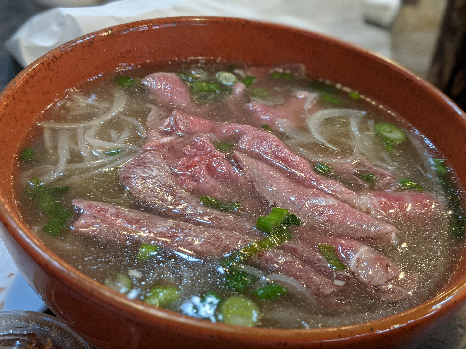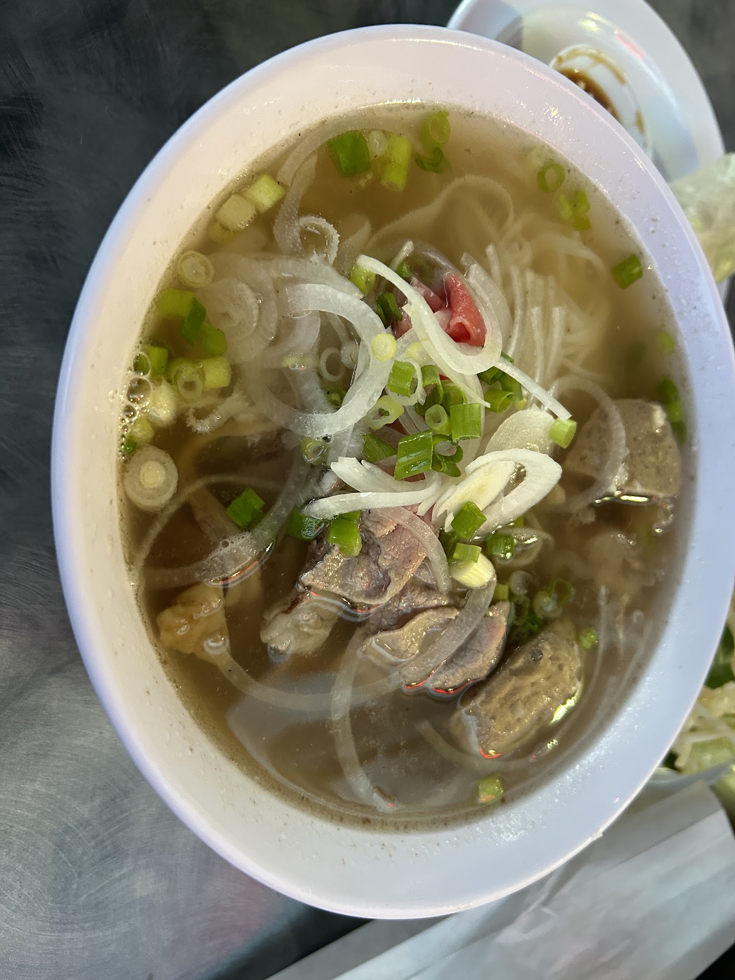 You have to order at the counter and they bring you your food. We ordered a regular pho (they only had an option for small or regular) and the “Com” beef plate. Upon payment I was unsurprisingly prompted to select how much I wanted to tip and presented with the options of 1) 20% 2) 30% 3) 40% or 4) select other… I selected other and entered a 15% tip because I was ordering for myself and wasn’t so sure Id get good service… but I was still hoping so left 15%. There were 3 other couples there eating or waiting for their food. We waited about 15mins and then was served our “regular” pho which looked quite small compared to any of the many pho places we have gone. And the “com” plate was mostly rice. We were not served water but were permitted to ask for a cup to self serve us water and then also self pick up condiments for ourself from another counter (the server only processed our payment and brought us the food). She also forgot to bring out lime/sprouts/herbs with the pho so we again had to get up to get that. The food was good. But service was lacking. And then, upon leaving, we realized we were supposed to also bus our own table… so we reluctantly did while wondering why we left a tip and why were ever prompted to enter a 20-40% tip ….. won’t be back again. But food was...