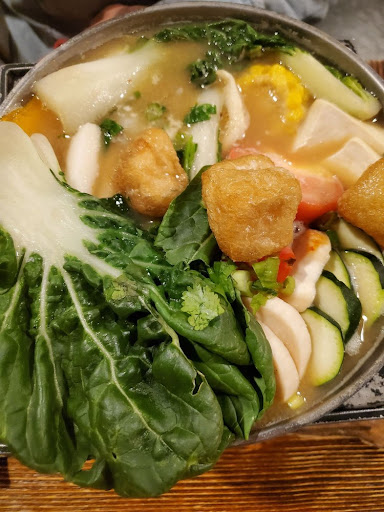 We arrived around 8pm or so for a late night dinner (bonus points that this place is open til fairly late 10:30-11:30pm depending on the day) and were instructed to seat ourselves. We ordered the Japanese Miso and Vegetarian hotpot, along with their black milk tea and the kumquat lemon green tea. The hotpot broths were flavorful and the variety of ingredients in each pot were great! As for the drinks, our favorite between the two was definitely the kumquat lemon green tea which was sweet with a bit of tartness to balance it out. The black milk tea was equally good and perfect for anyone looking to satisfy a milk tea craving.